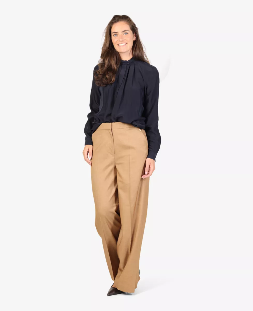De Nore broek van Aaiko combineert een moderne snit met optimaal draagcomfort. De hoge taille en wijde pijpen zorgen voor een flatterend silhouet, terwijl de soepel vallende stof de broek een elegante, vrouwelijke uitstraling geeft. Ideaal voor zowel een dag op kantoor als een avond uit, en moeiteloos te combineren met zowel casual als chique items.