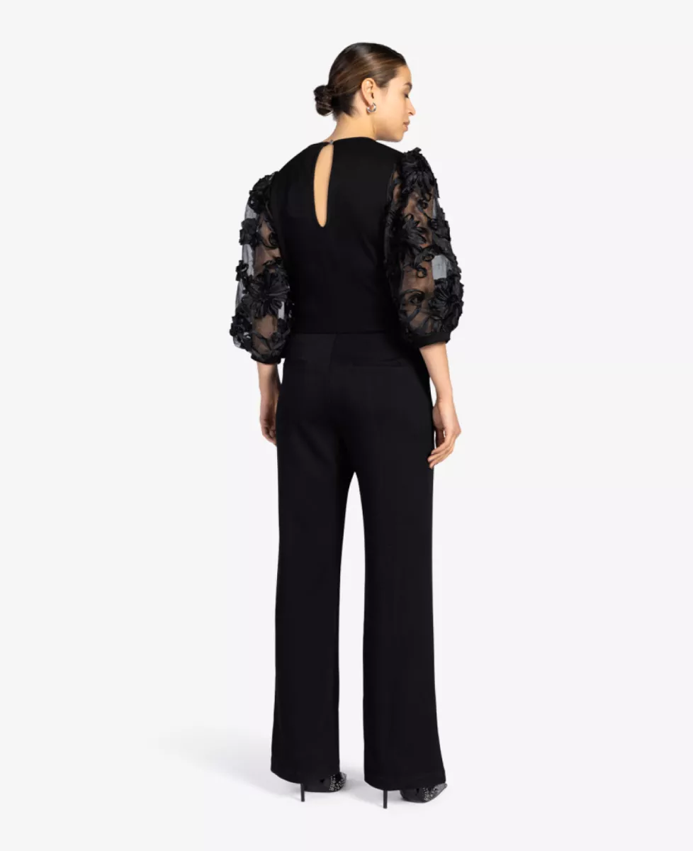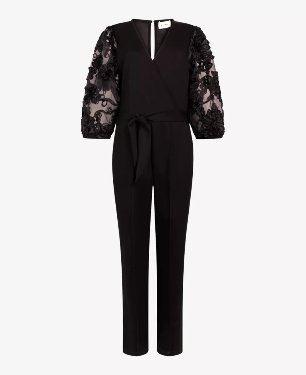 De Aaiko Lizeth VIS 436 is een elegante zwarte jumpsuit, vervaardigd uit hoogwaardige, soepelvallende stof die comfort en een luxe uitstraling combineert. De vrouwelijke pasvorm flatteert het silhouet perfect, terwijl de diepe V-hals een stijlvolle, open uitstraling geeft. De lange mouwen met een subtiele pof aan de schouder en elastische band bij de pols zorgen voor een verfijnde en moderne touch.