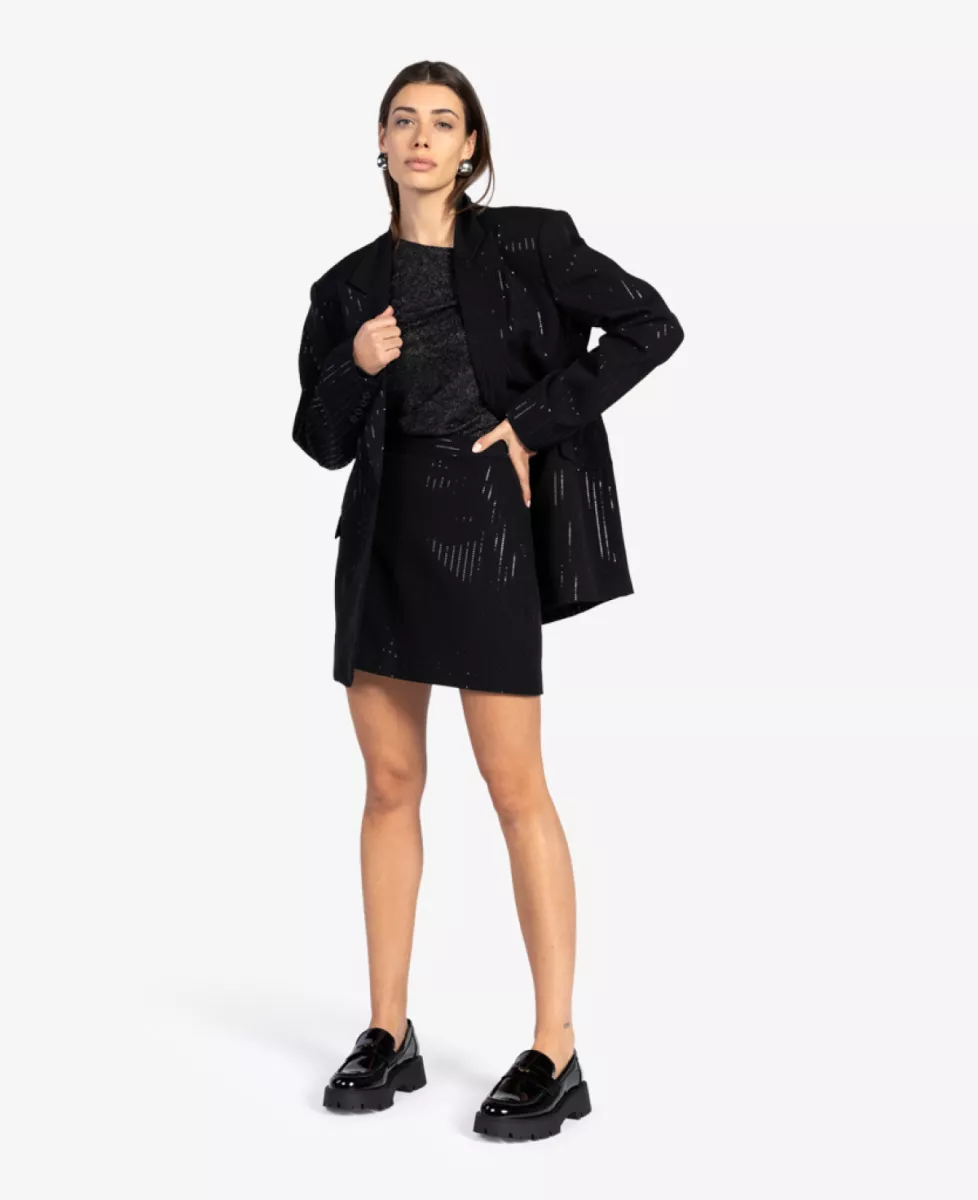 De Nasma Stripes rok van Aaiko is een stijlvolle must-have met een elegante, verticale streep die een slank silhouet creëert. Gemaakt van een comfortabele viscoseblend, voelt hij zacht aan en biedt hij lichte stretch voor een perfecte pasvorm. De rok valt op midi-lengte, heeft een normale taille en sluit mooi aan zonder strak te zitten.