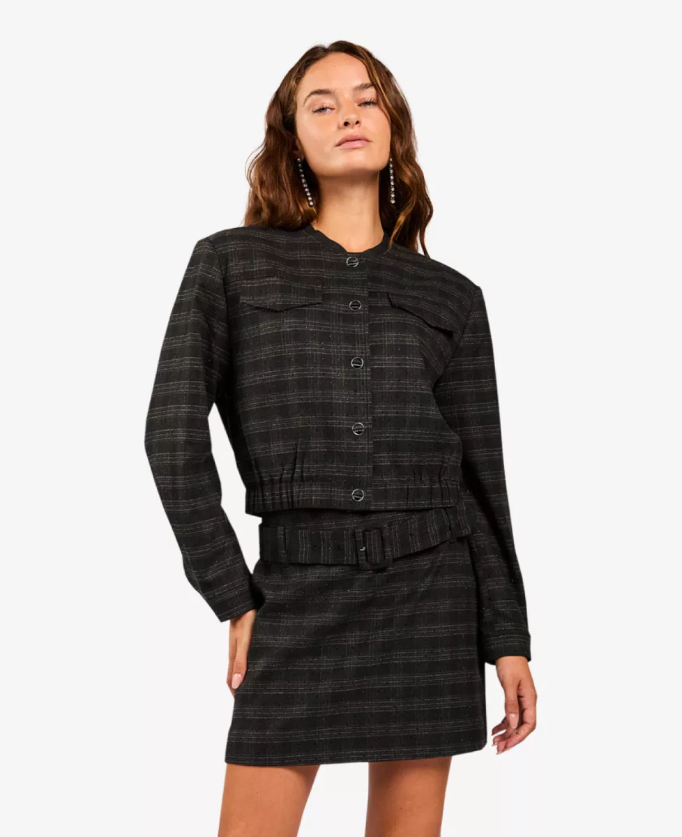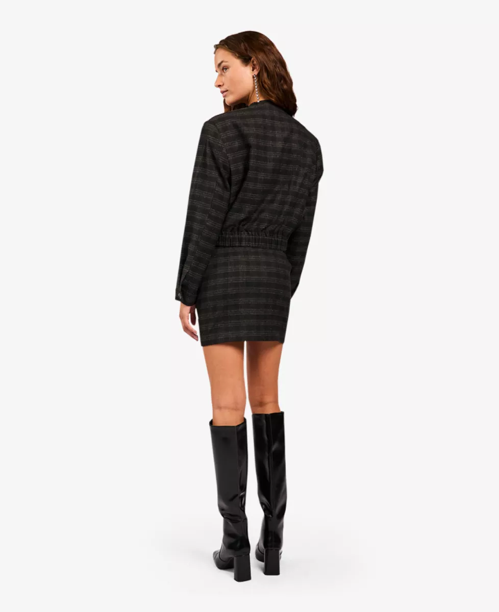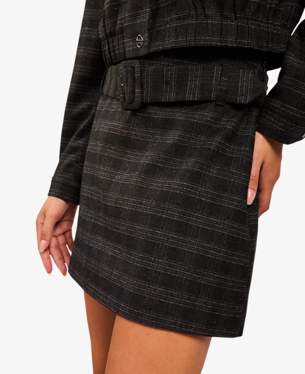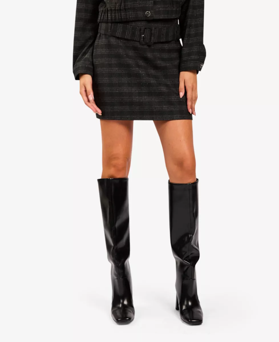 Deze klassieke minirok is uitgevoerd in een stevige tweedstof die zorgt voor een tijdloze uitstraling. De rechte pasvorm geeft het item een strakke, elegante lijn, terwijl de brede riem in dezelfde stof een subtiel statement maakt. Dankzij de ritssluiting aan de zijkant blijft het silhouet mooi gestroomlijnd.