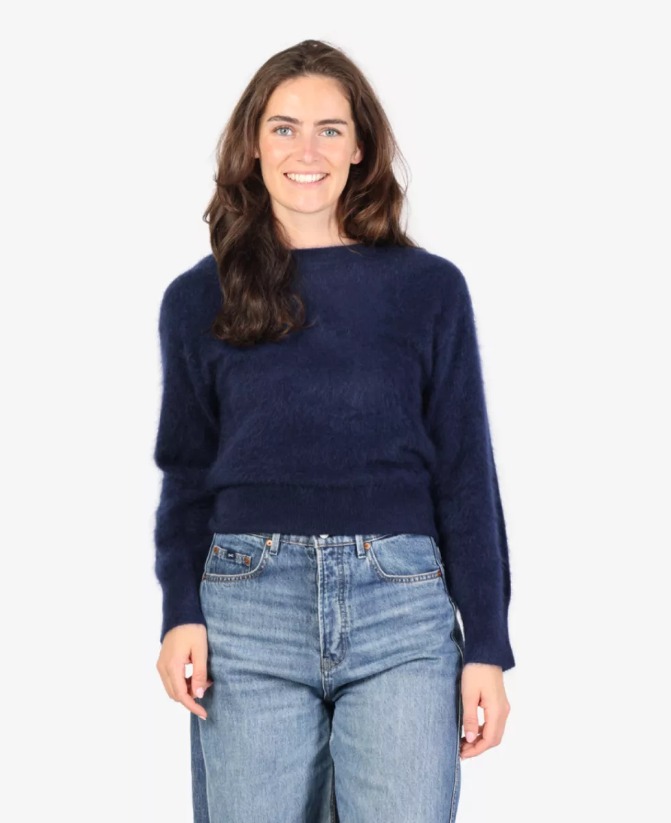 Deze damestrui met ronde hals is vervaardigd uit 100% geborsteld kasjmier en biedt een luxueus zachte en warme draagervaring. Het breisel bestaat uit twee draden met een fijnheid van 12 GG, wat zorgt voor een elegante en verfijnde structuur. De trui heeft een rechte pasvorm, lange mouwen en is afgewerkt met geribde boorden. Dankzij de klassieke snit en hoogwaardige afwerking is dit een tijdloos kledingstuk dat comfort en stijl moeiteloos combineert.