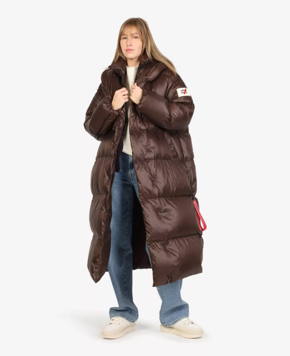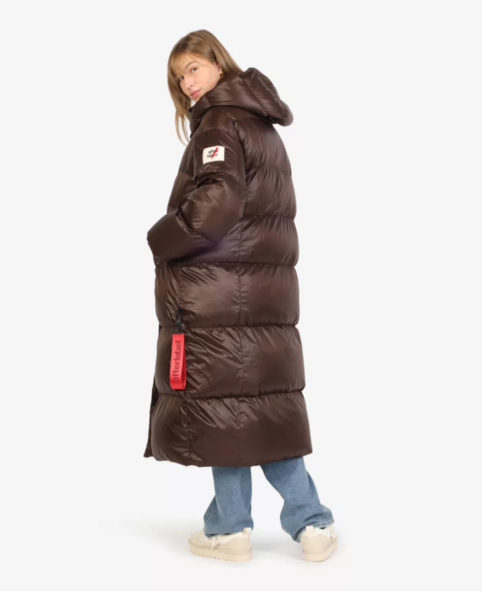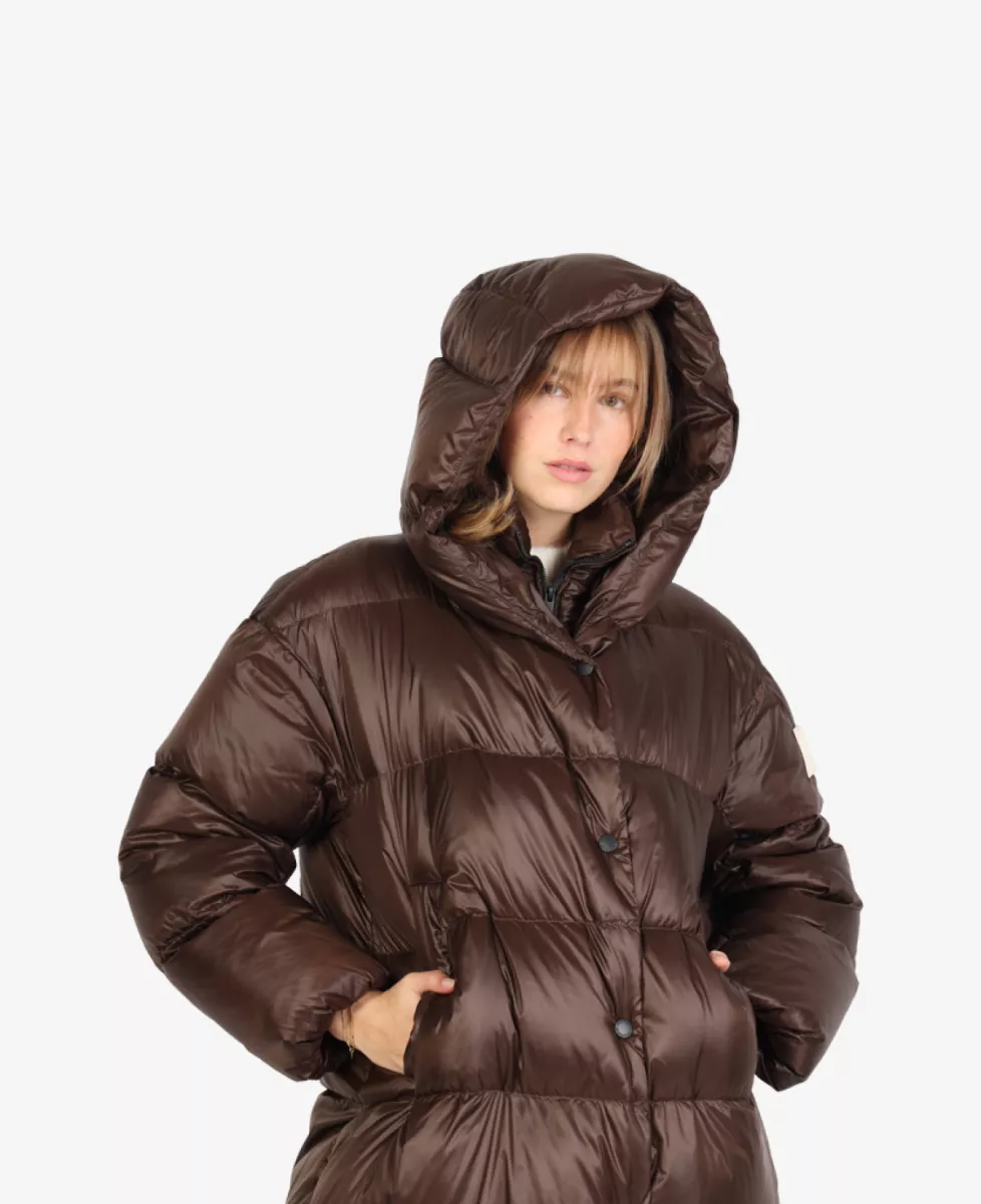 Jas van After Label in een bruine kleur. Deze jas heeft een capuchon.