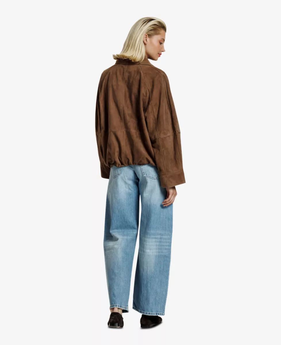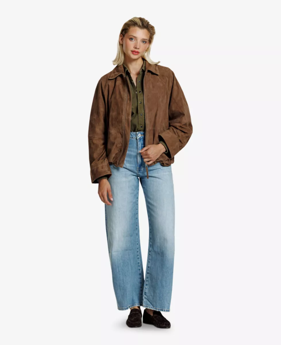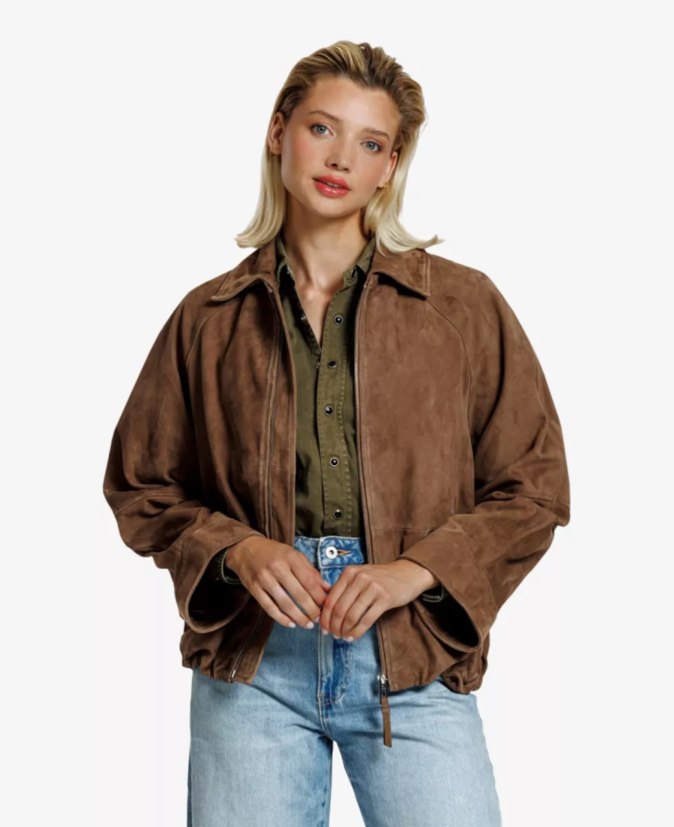 Met zijn oversized pasvorm, verlaagde schouders en zachte, fluweelachtige textuur heeft het jasje een luxe en nonchalante uitstraling. De brede kraag en soepele ritssluiting geven het ontwerp een stoere touch, terwijl de elastische zoom zorgt voor een mooi silhouet. Een veelzijdig item van Alter Ego, perfect voor het najaar – draag het over een blouse, shirt of lichte trui voor een casual maar stijlvolle look.