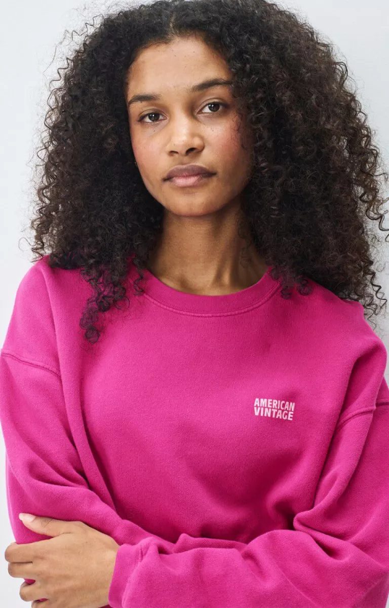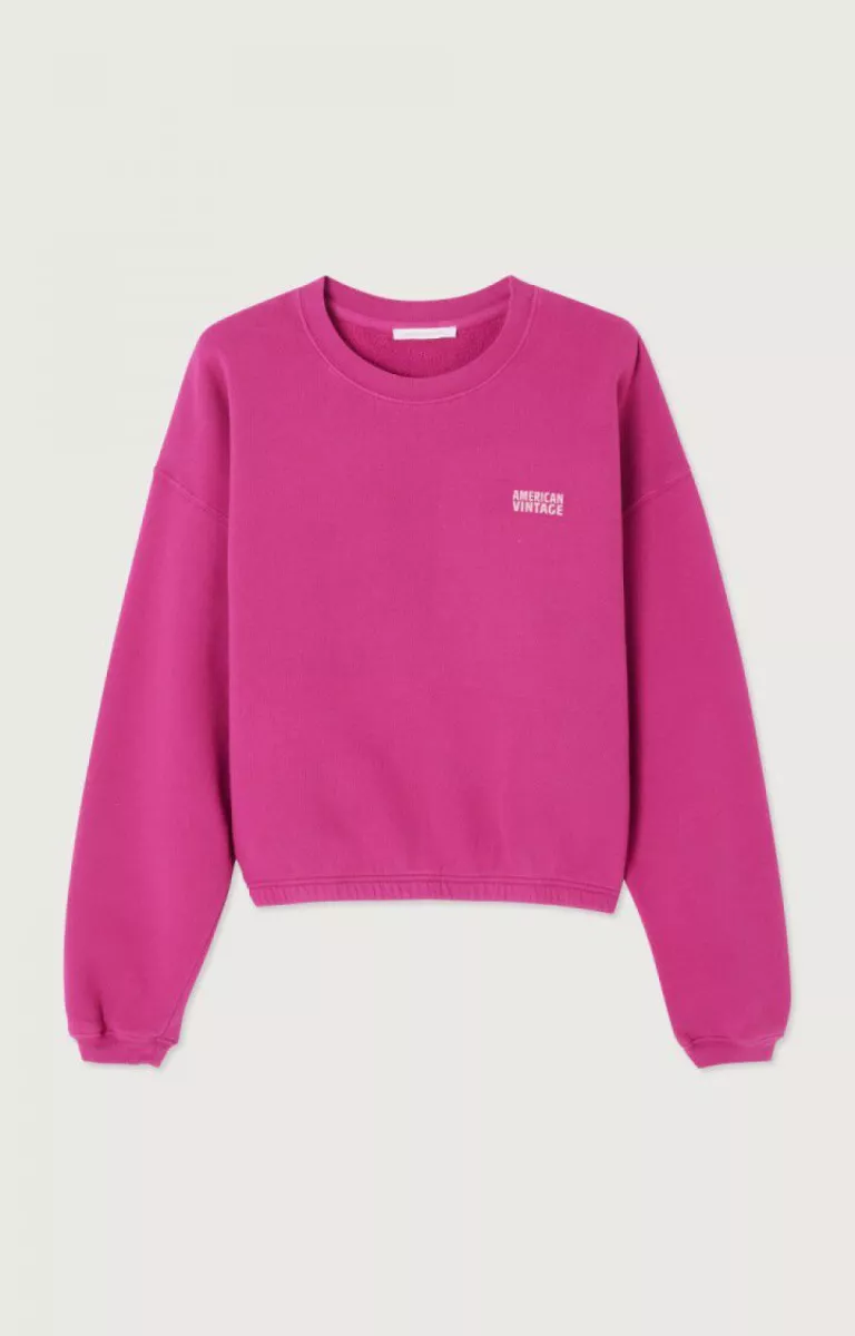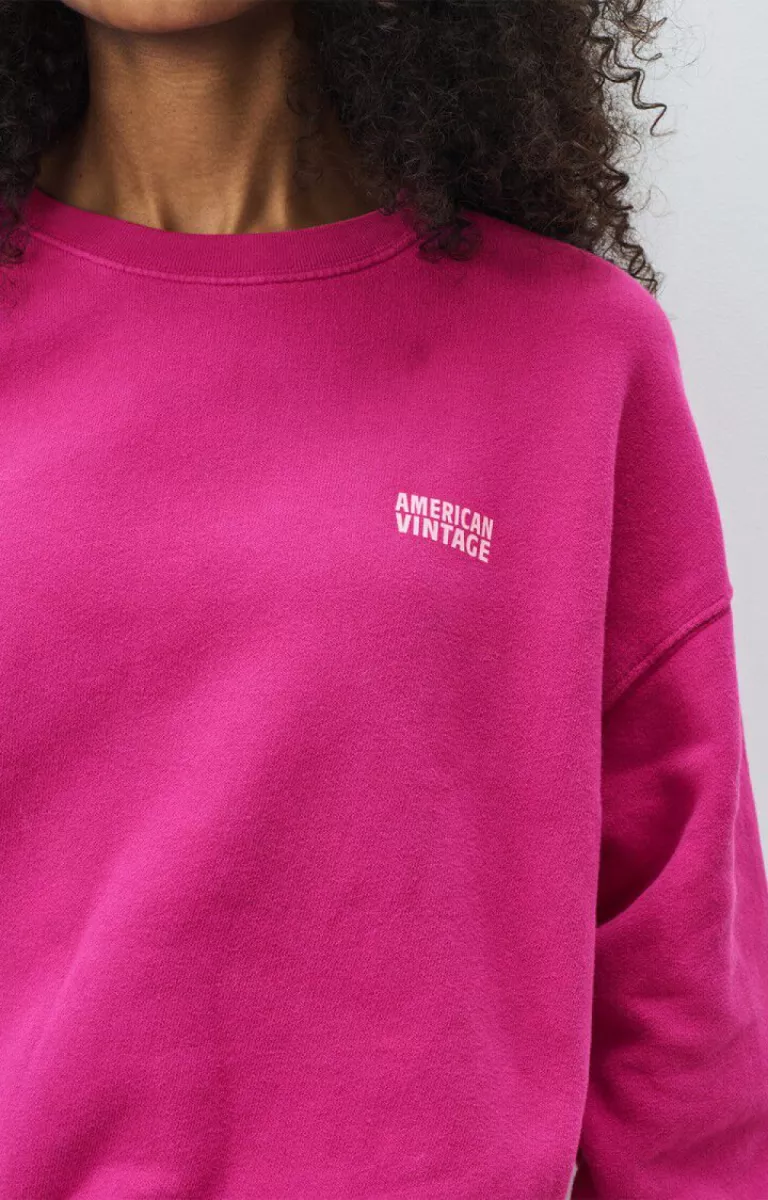 American vintage trui De American Vintage trui heeft een ronde hals en lange mouwen, wat zorgt voor een comfortabele en tijdloze uitstraling. De elastieken band aan de onderkant van de trui zorgt voor een mooie pasvorm. Links boven is subtiel de naam “American Vintage” geborduurd, wat een kenmerkend detail toevoegt. Perfect voor een casual, stijlvolle look.. Materiaal: 98% katoen, 2% elastaan. Lengte: rugpand: 47cm.