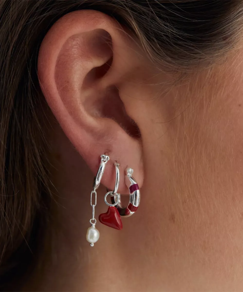 Anna + Nina Single Heart Beat Ring Earring De Single Heart Beat Ring Earring is een leuke oorbel die een vleugje kleur aan je collectie toevoegt. Met een elegante ring en een rode emaille hartbedel is deze oorbel perfect om te combineren met andere sieraden. Handmade jewelry – Wordt verkocht als één enkel item. Materiaal: 925 Sterling zilver. Lengte: 12 x 6 x 21 mm.