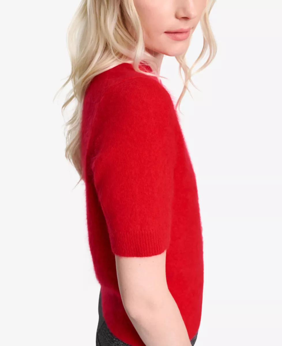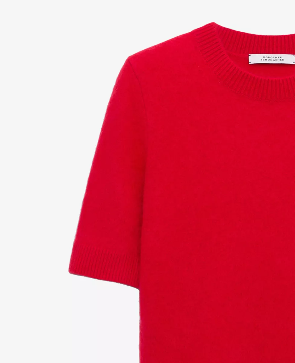 De fluffy wash trui met korte mouwen is een comfortabel en zacht item, gebreid in een luxe mix van kasjmier en merinowol. De speciale fluffy wassing geeft het losjes vallende model een extra zachte uitstraling.