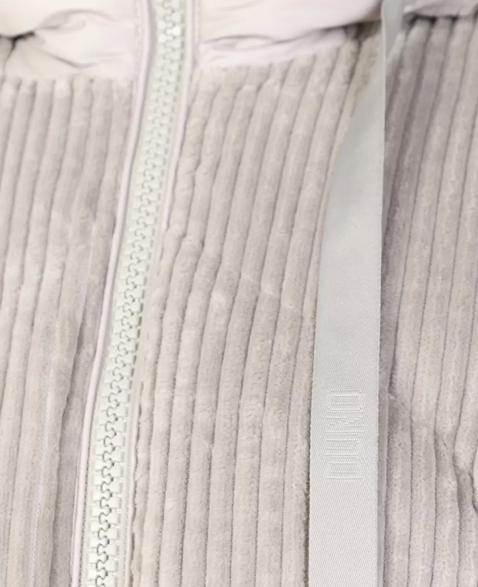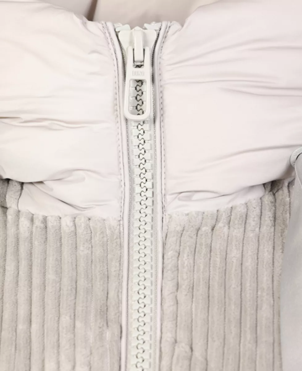 Deze jas van Duno is uitgevoerd in een zachte suède ribstof en heeft een sportieve uitstraling. De capuchon is verstelbaar met een trekkoord en de paspelzakken zorgen voor een strakke afwerking. De dubbele ritssluiting kan zowel van boven als van onderen geopend worden. Elastiek aan de mouwuiteinden zorgt voor een comfortabele pasvorm.