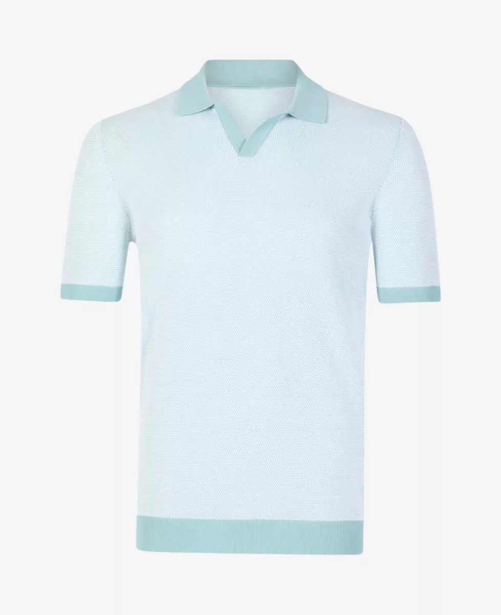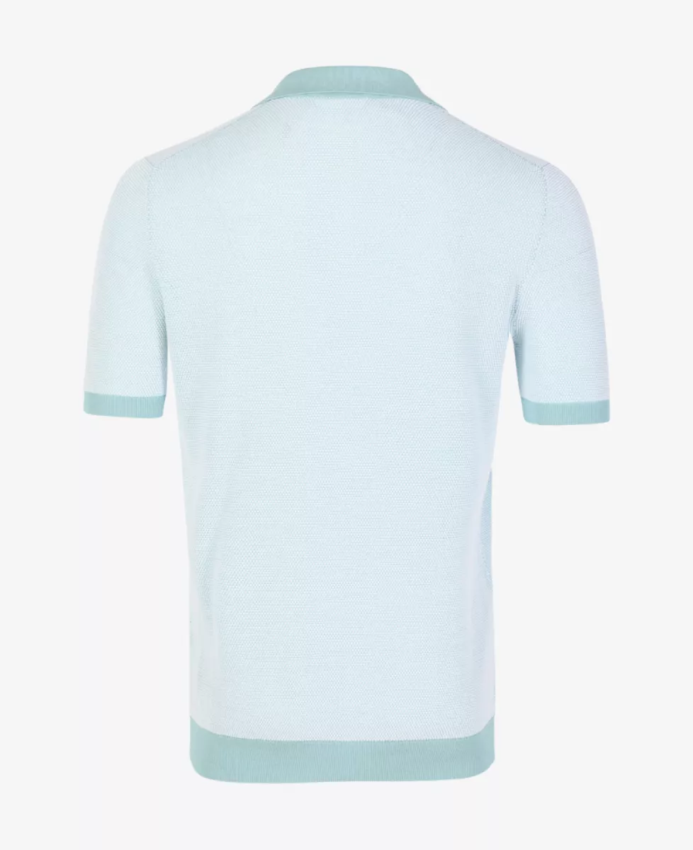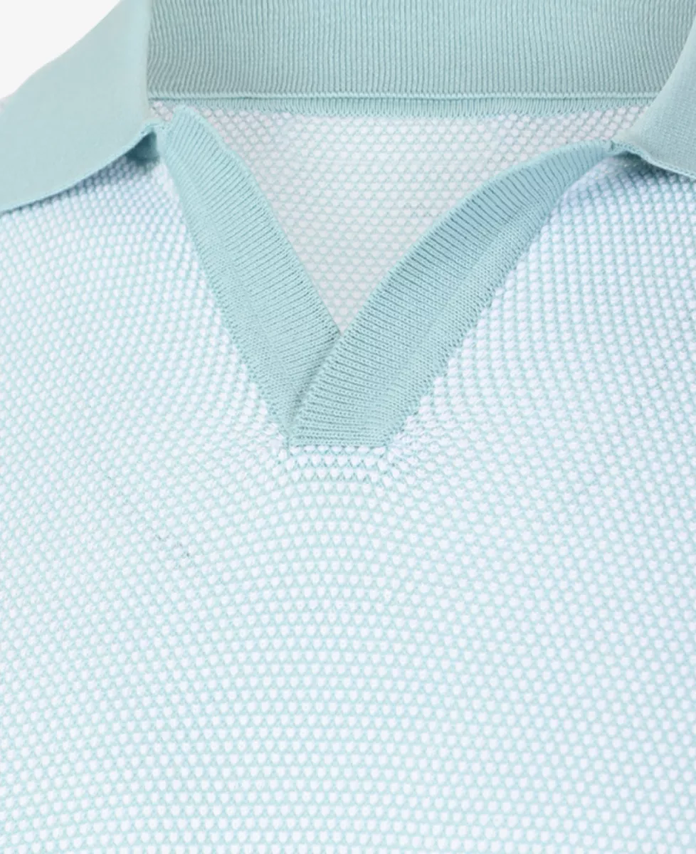 Gran Sasso Polo Een verfijnde Gran Sasso polo, ontworpen met een aangename all-over structuur die zowel stijlvol als comfortabel is. De iets donkere kleurtjes geeft het kledingstuk een elegante uitstraling, terwijl de kraag en de subtiele V-hals zorgen voor een tijdloze afwerking. Perfect voor een verzorgde en veelzijdige look.. Materiaal: 100% Katoen. Lengte: rugpand 70 cm.