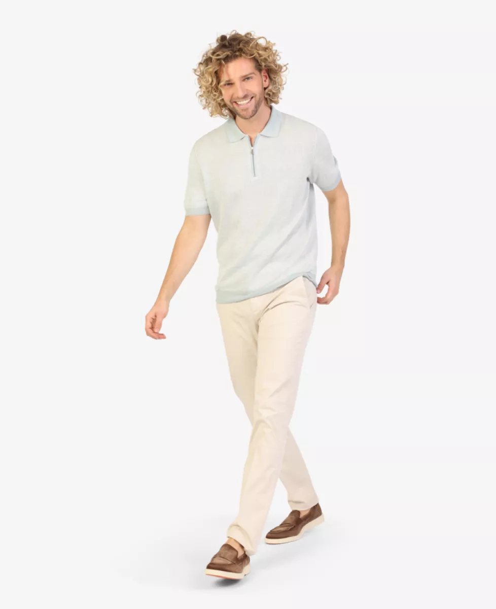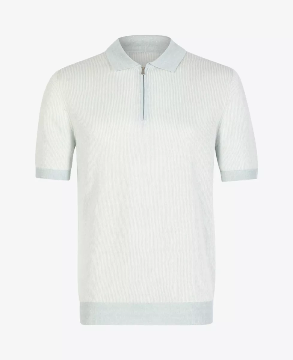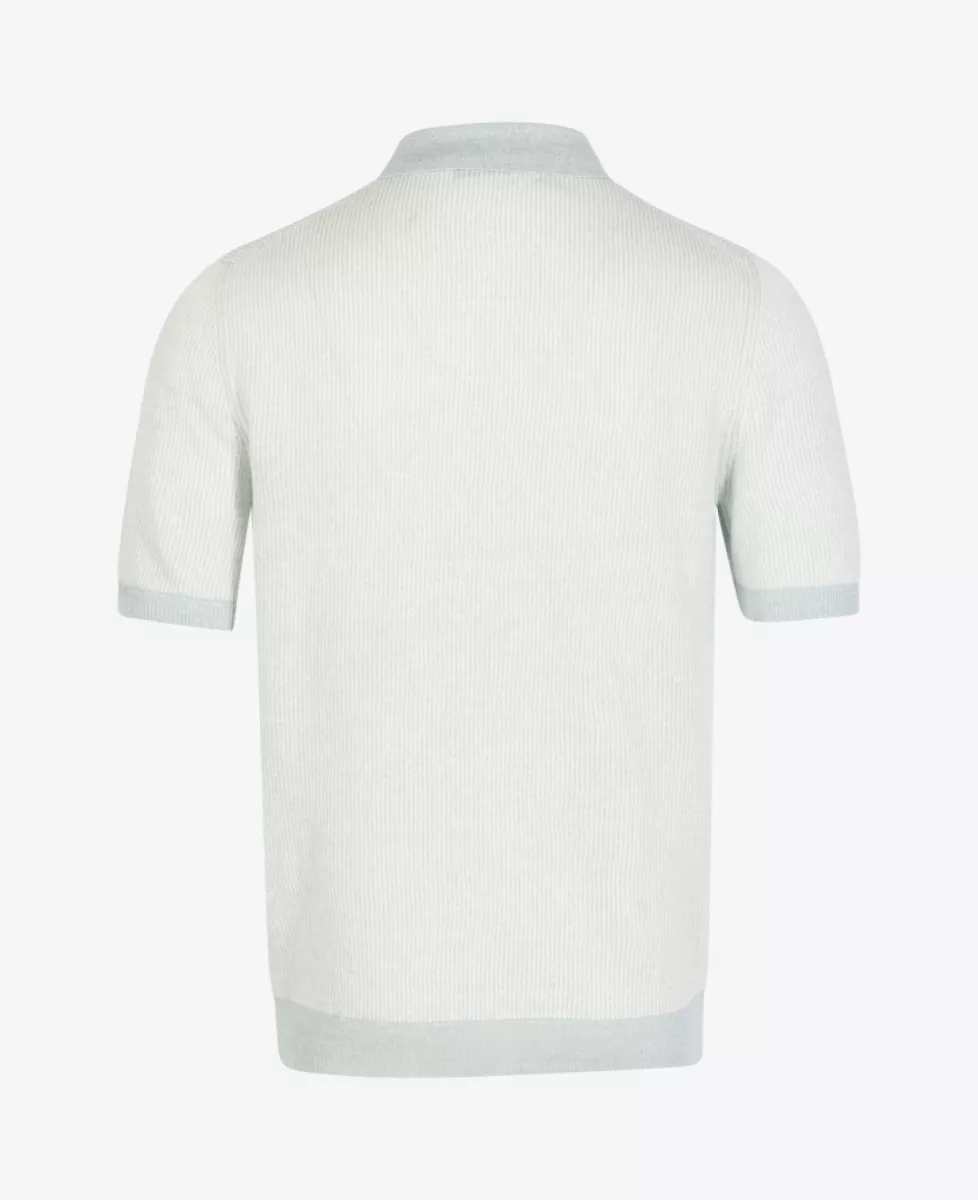 Gran Sasso Polo Deze polo van Gran Sasso straalt verfijning uit met zijn stijlvolle all-over gestikte streeppatroon. Het ontwerp wordt geaccentueerd door een klassieke kraag en een ritssluiting bij de halsslijn, wat zowel praktisch als modern is. De ribboorden zorgen voor een nette afwerking en bieden een subtiel contrast, waardoor de polo een veelzijdige keuze is voor zowel casual als smart-casual gelegenheden.. Materiaal: 68% Linnen, 32%Katoen. Lengte: rugpand 66 cm.