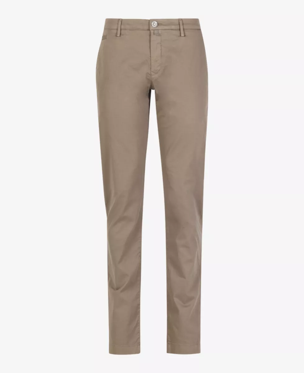 Jacob Cohen Chino Chino broek van Jacob Cohen met een slim fit en lage taille, stretch-katoen en Lyocell diagonale keperstof, kledingstuk geverfd Schuine zakken, kleine paspelzak op de heup en paspelzakken aan de achterkant Grijze suède achterpatch met nikkelafwerking en logo geëmailleerde knoop met een bolle vorm, gegraveerd logo Geborduurd met de stijlnaam en oprichtersquote aan de binnenkant van de sluiting.. Materiaal: 55% katoen, 42% lyocell, 3% elastaan. Lengte: binnenbeen 80 cm.