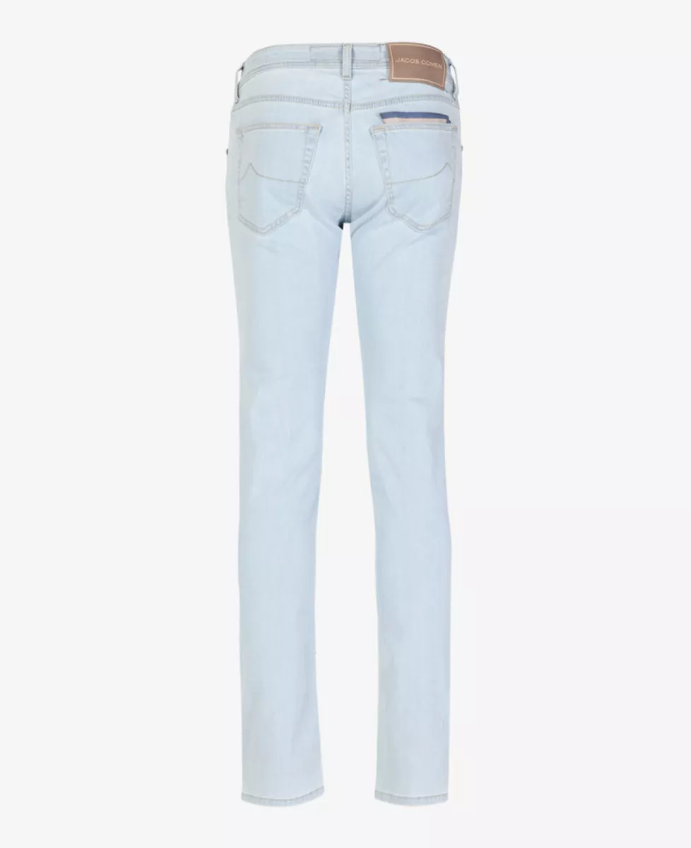 Jacob Cohen Jeans De Jacob Cohen jeans combineert modern design met optimaal draagcomfort. Het slanke silhouet zorgt voor een stijlvolle en flatterende pasvorm, perfect voor een eigentijdse look. Het stretchmateriaal biedt flexibiliteit en bewegingsvrijheid, terwijl de lagere tailleband (heupmodel) een casual en trendy uitstraling geeft. De klassieke knoopsluiting draagt bij aan een nette afwerking, en de opvallende meerkleurige patch voegt een speelse en unieke touch toe. Een veelzijdige jeans die zowel functioneel als modieus is.. Materiaal: 65% Polyester, 35% Katoen,. Lengte: Binnenbeen: 83 cm.