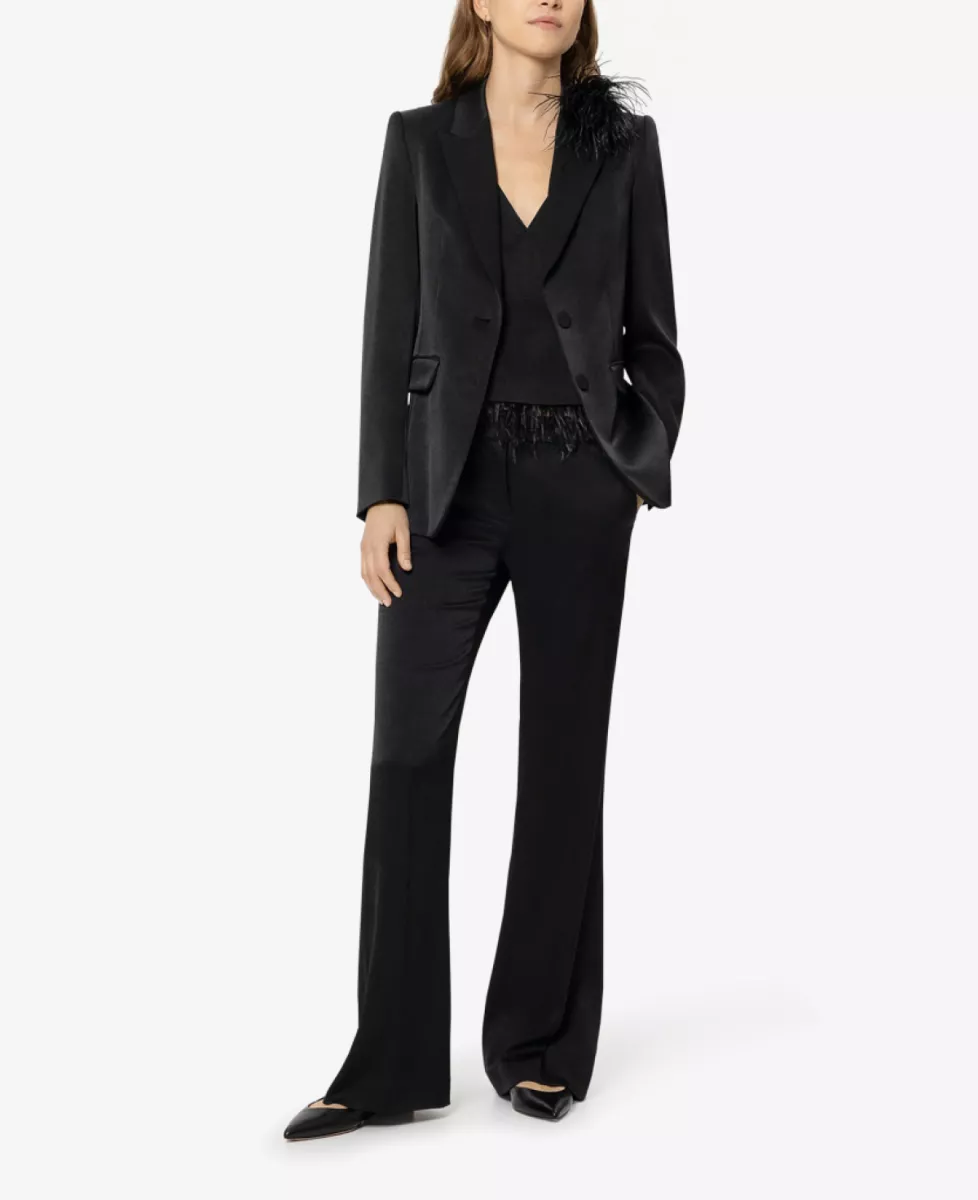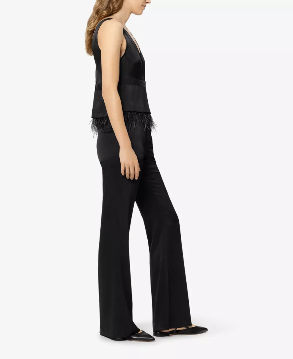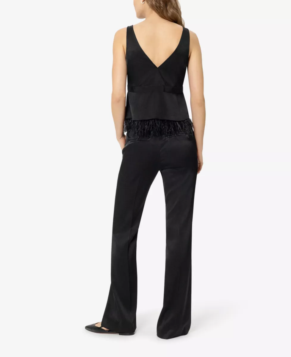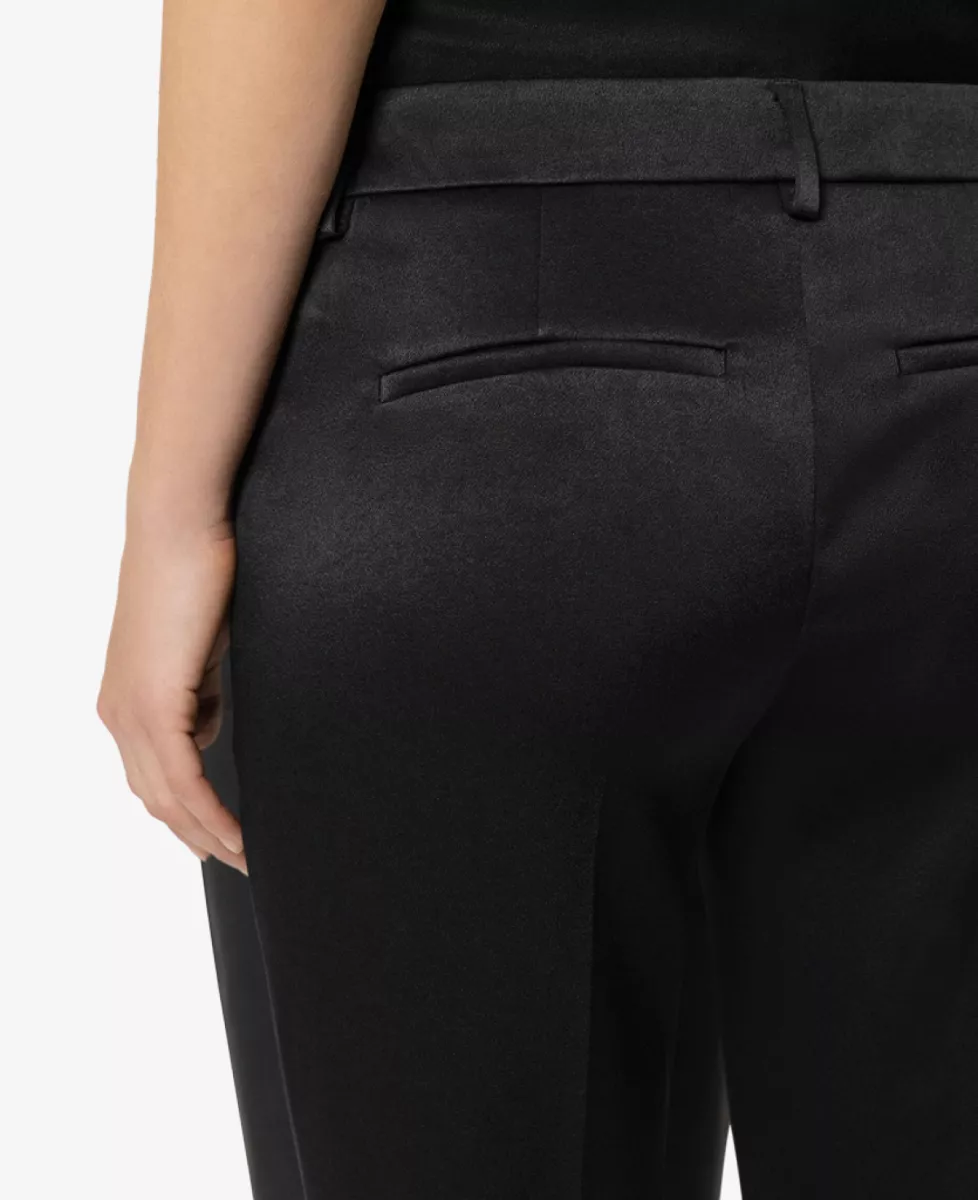 De bootleg pantalon is gemaakt van soepel triacetaat crêpe met een matte satijnen look en elegante plooien. Het ontwerp wordt compleet gemaakt door twee steekzakken aan de zijkant en twee nepzakken aan de achterkant.