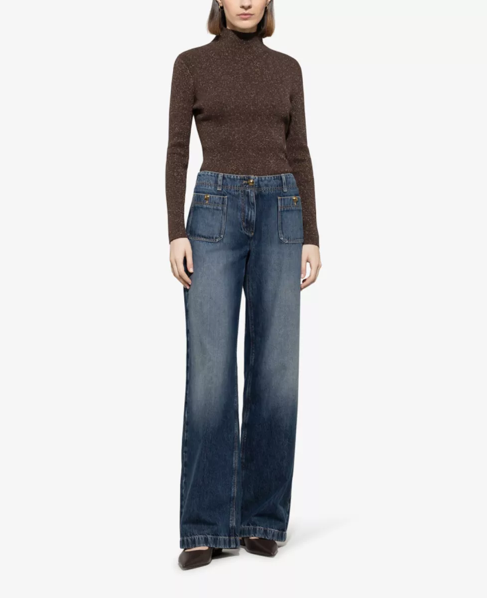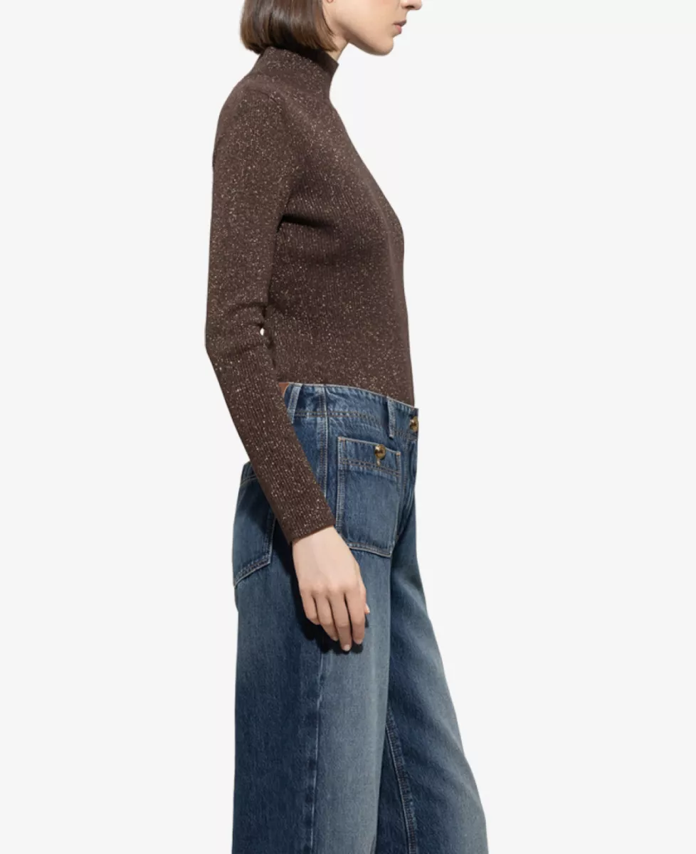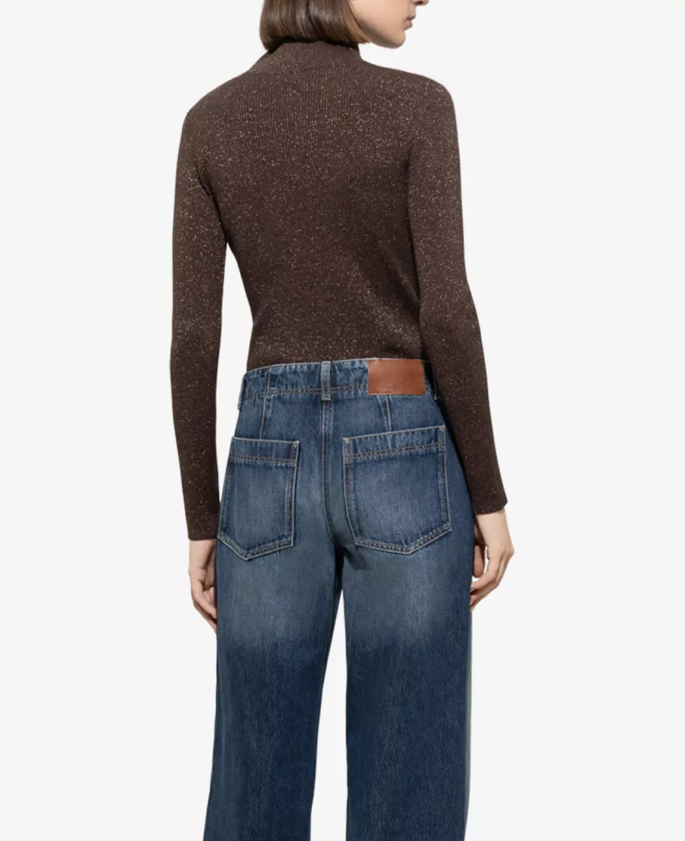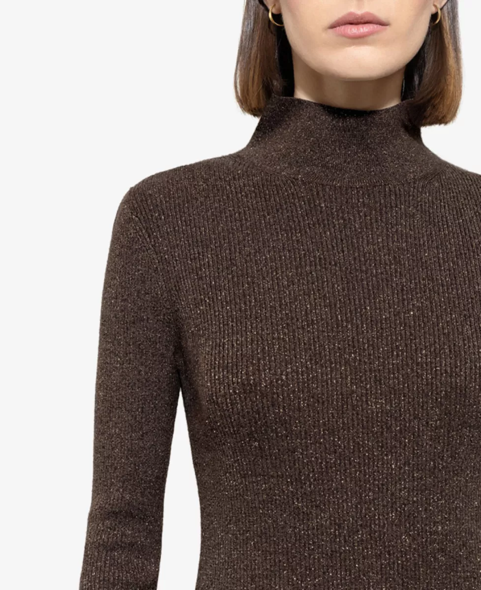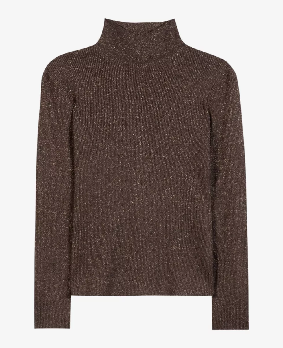 Deze top heeft een aangesloten pasvorm en is uitgevoerd in een fijngebreide stof met subtiele glitters. De colkraag en lange mouwen geven een elegante en tijdloze uitstraling. Een verfijnd item dat moeiteloos van dag naar avond gedragen kan worden.