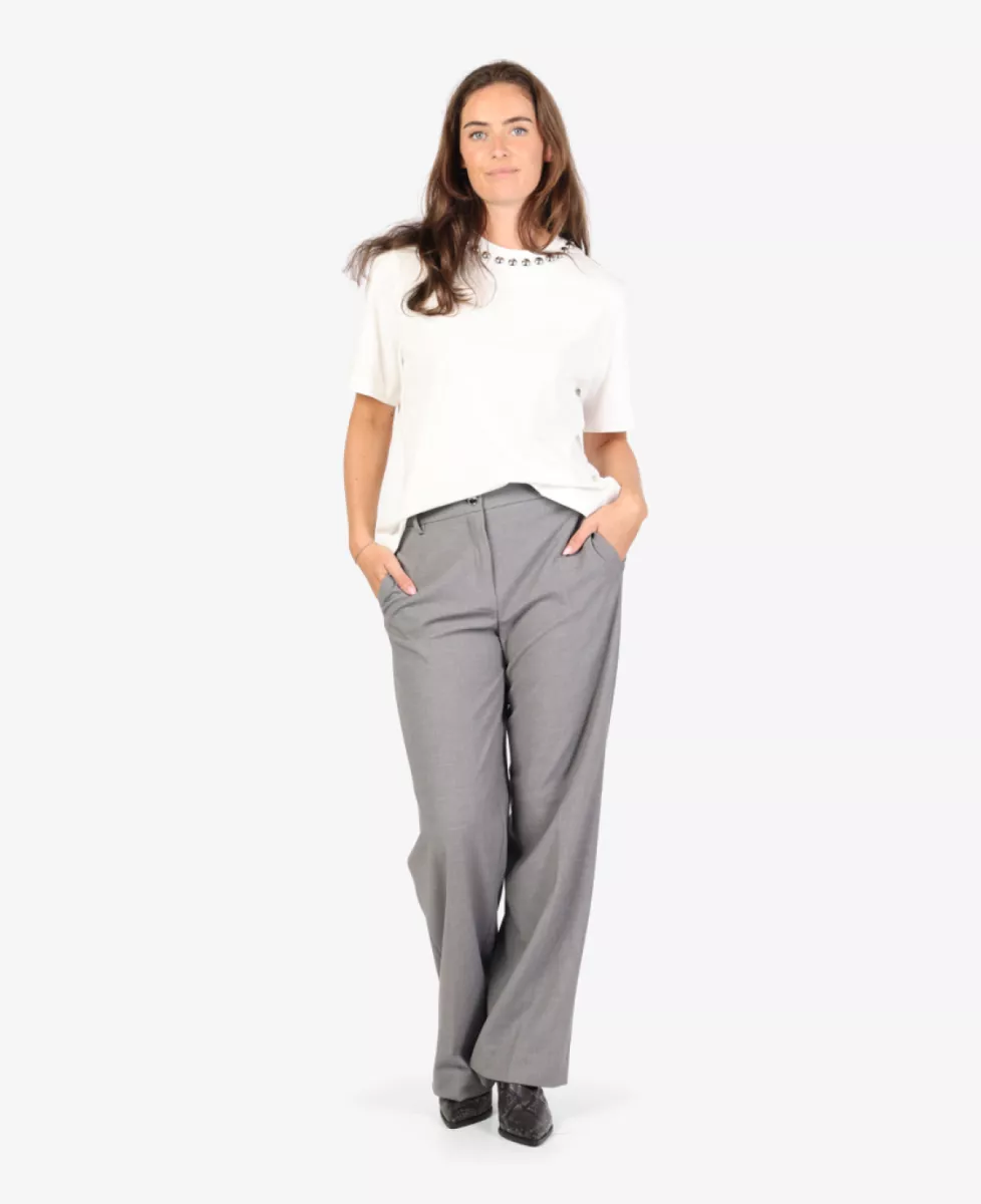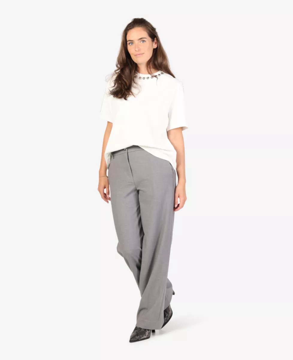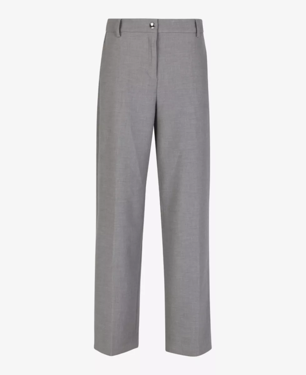Deze grijze Camilla-pantalon van MAC heeft een wijde pijp en een verhoogde taille voor een moderne uitstraling. Gemaakt van onderhoudsvriendelijke bi-stretch met een wolachtige look, biedt de broek zowel comfort als stijl. De zijdelingse steekzakken en het hoogwaardige doubleface-materiaal met hoog viscosegehalte zorgen voor een luxe afwerking. Een veelzijdige keuze voor zowel dagelijks gebruik als speciale gelegenheden.