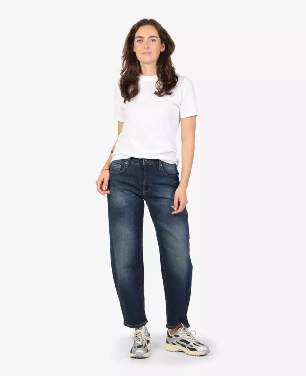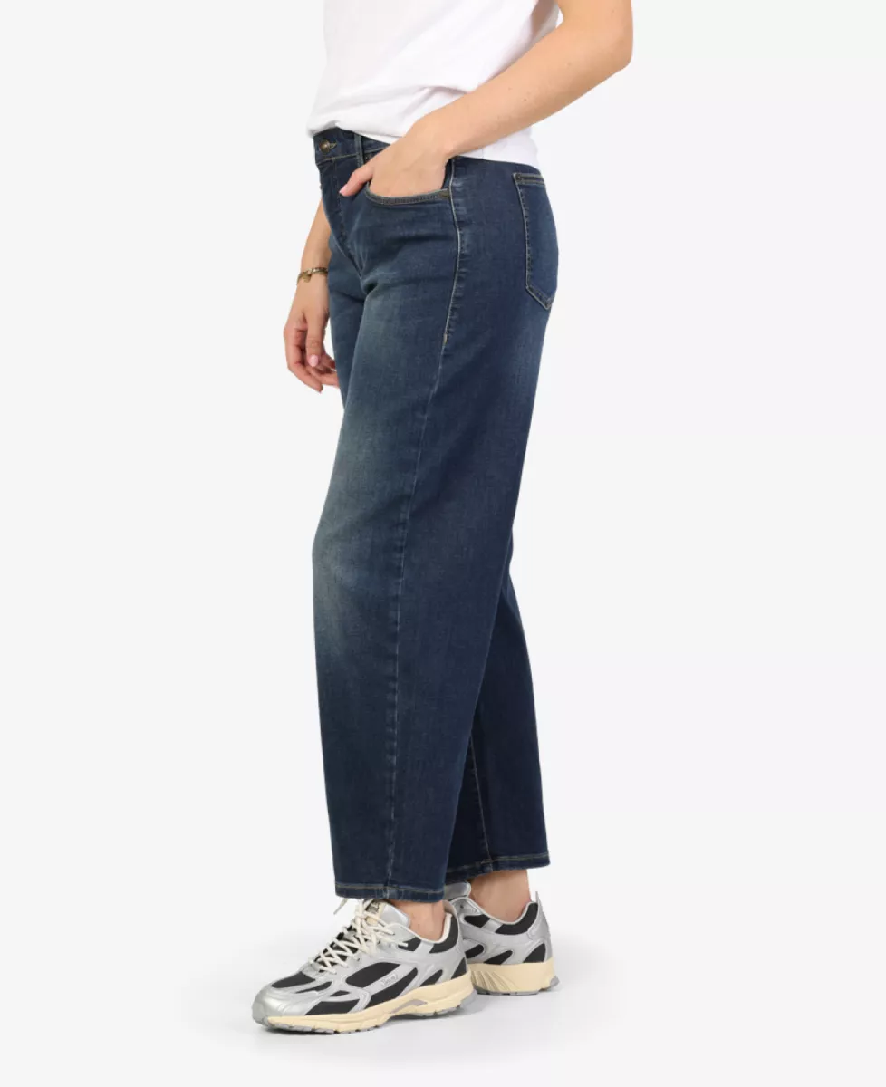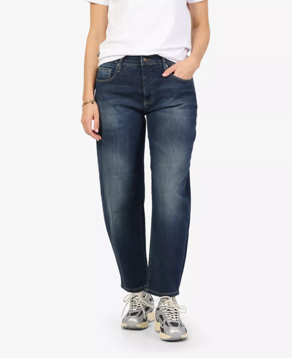 Mac jeans in een donkerblauwe wassing, gemaakt van een mooie kwaliteit katoen. Deze broek bevat een comfortabele pijp met bredere snit vanaf het bovenbeen.