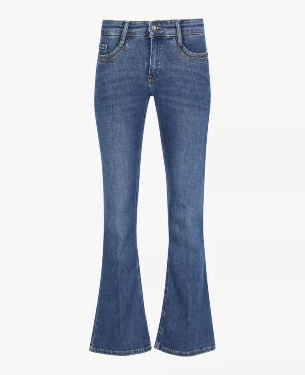 Deze flatterende MAC jeans is een perfecte mix van stijl en comfort. Het model heeft een lage taille en een uitlopende pijp voor een vrouwelijke, tijdloze look. Voorzien van praktische steekzakken en achterzakken, en een klassieke rits- en knoopsluiting. Dankzij de stretchstof sluit de jeans mooi aan en beweegt hij comfortabel met je mee – ideaal voor elke dag