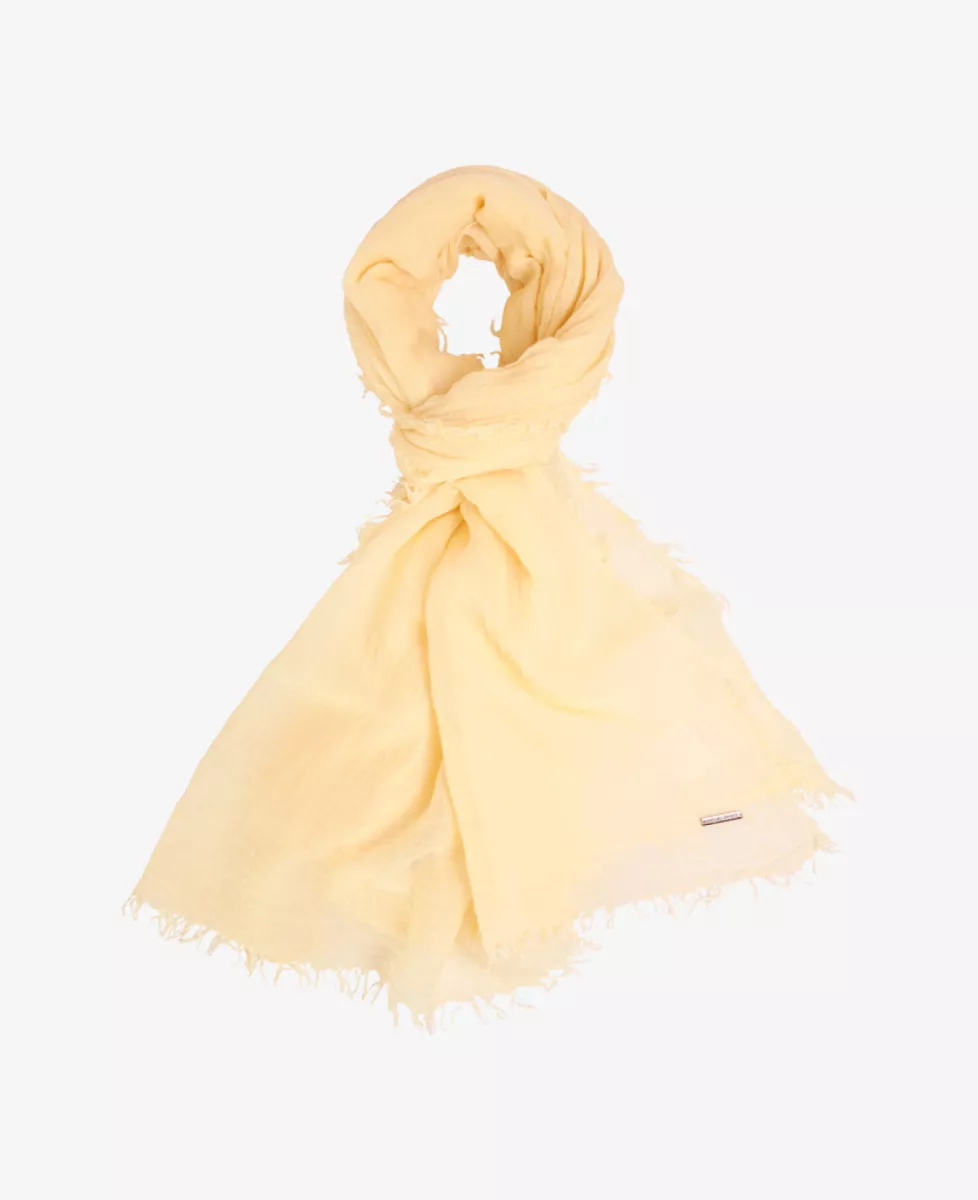 Een lichte sjaal gemaakt van een zachte mix van modal en wol, uitgevoerd in een langwerpige vorm. De modieuze crinkle-structuur en de subtiele franjes geven het accessoire een ontspannen, nonchalante uitstraling. Perfect om stijlvolle laagjeslooks mee te creëren – geschikt voor elk seizoen.