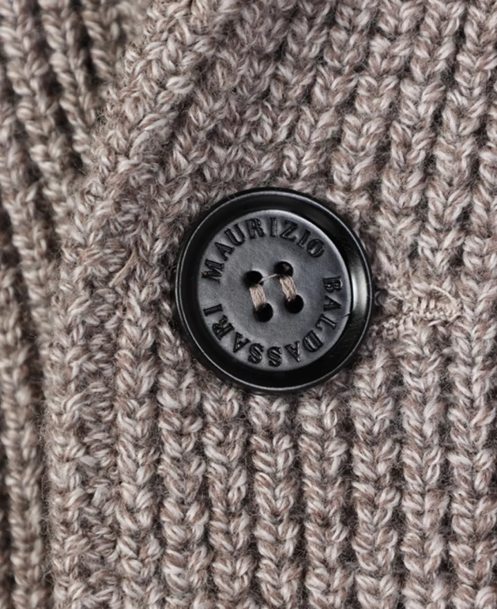 De Brenta swacket van Maurizio Baldassari is een verfijnd gebreid jasje dat comfort en elegantie perfect combineert. Vervaardigd uit 100% extra fijne scheerwol en uitgevoerd in een karakteristieke maissteek, biedt dit kledingstuk een compacte structuur met een uitzonderlijk zachte en comfortabele feel. Voorzien van een klassieke drieknoopsluiting en twee opgestikte zakken, is dit iconische ontwerp ideaal voor zowel casual als geklede gelegenheden.