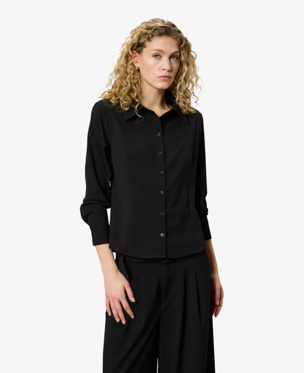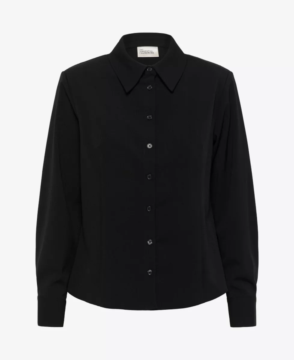 Strak overhemd van My Essential Wardrobe met rechte pasvorm, klassieke puntkraag en lange mouwen met manchetten. Het gladde, gestroomlijnde ontwerp en de volledige knoopsluiting geven het overhemd een moderne en elegante uitstraling.
