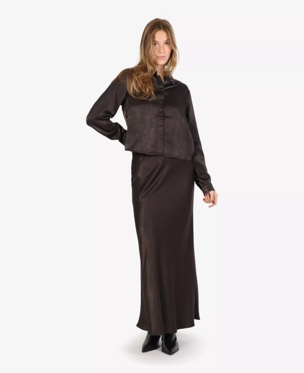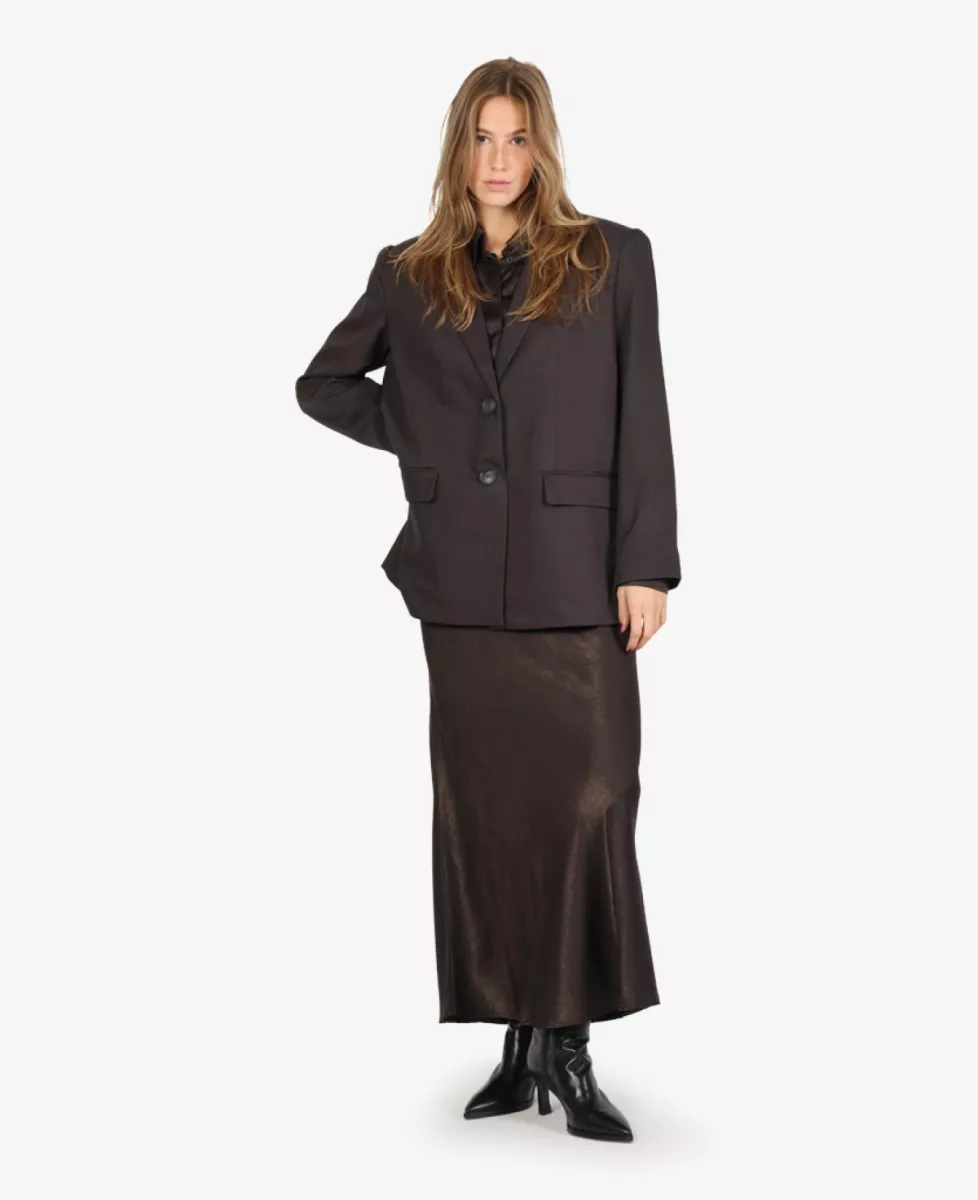 Deze A-lijn rok met lange lengte is een elegante en functionele toevoeging aan je garderobe. Gemaakt van een zachte mix van viscose en polyester, met een vloeiende pasvorm die moeiteloos stijl en comfort combineert.