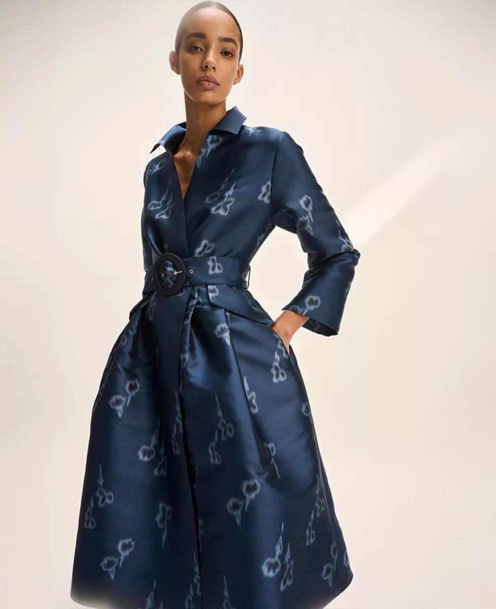 Deze verfijnde jurk van Natan is een echte eyecatcher dankzij het elegante bloemenpatroon. De jurk heeft een klassieke reverskraag en sluit met onopvallende drukknoopjes. Faux zakken met klepsluiting geven het ontwerp een stijlvolle, gestructureerde look. Met de bijpassende ceintuur kun je de taille naar wens accentueren. Een chique keuze voor een speciale gelegenheid of een stijlvolle dag uit.