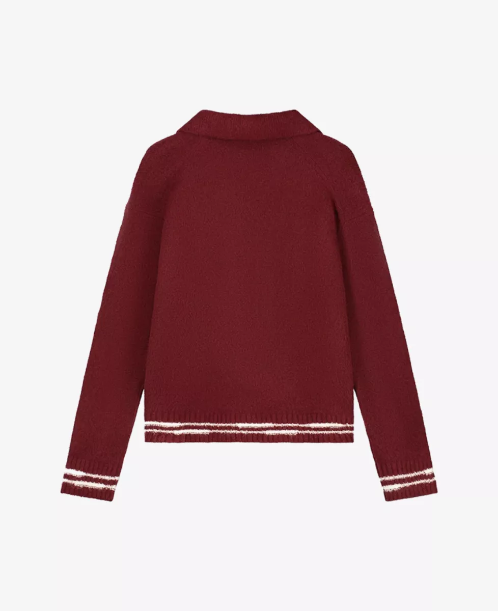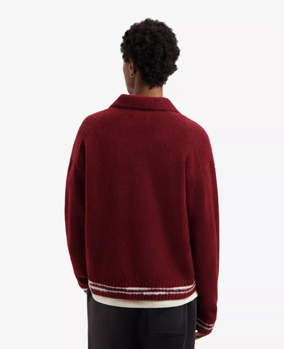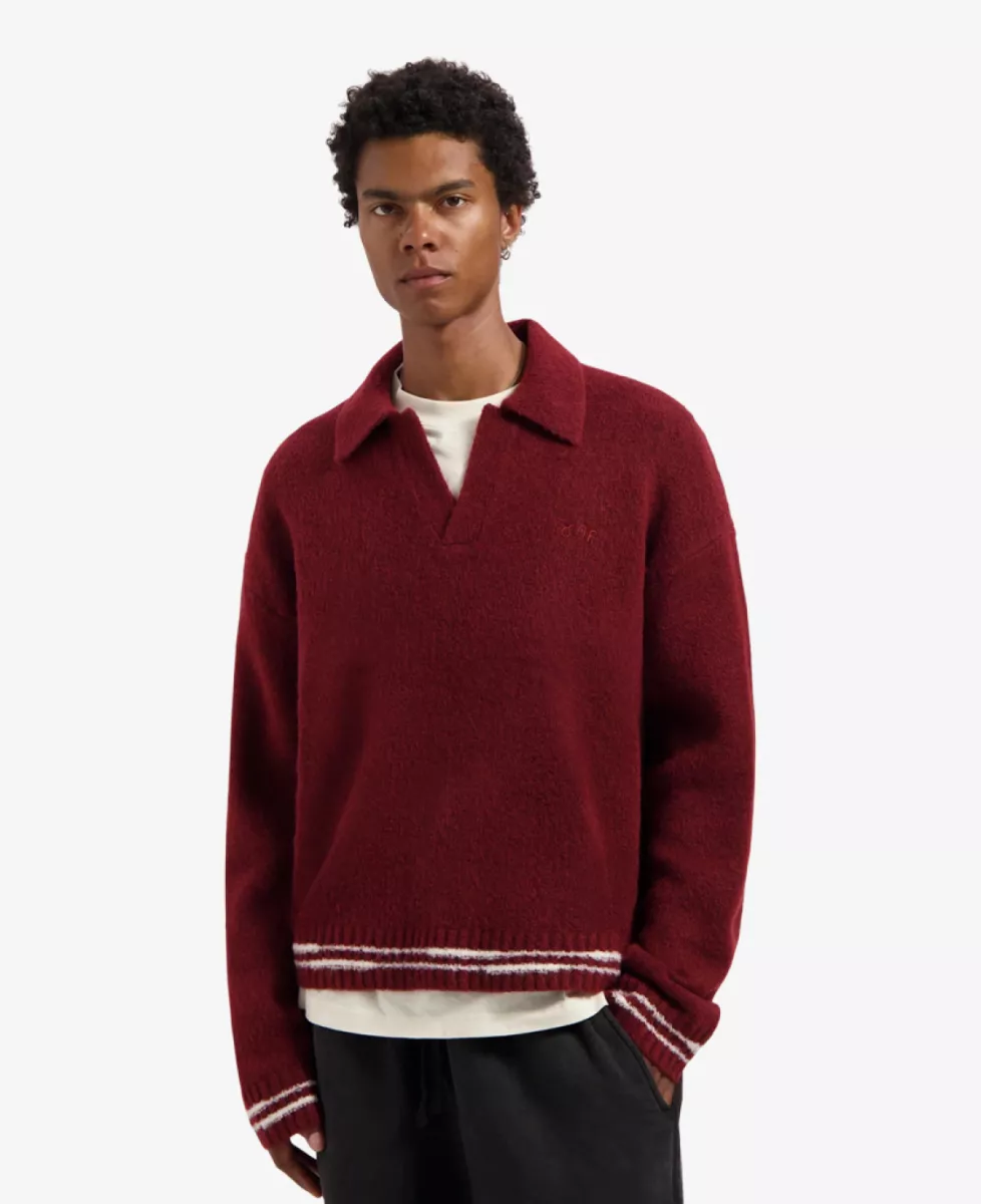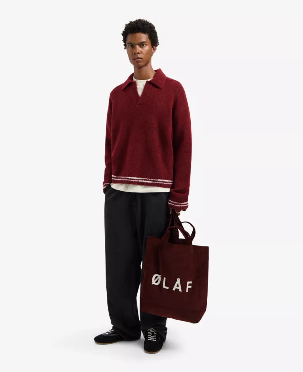 De Crafted Detail gebreide polo in Rum Raisin geeft een moderne draai aan een klassieke polo. Het ontwerp met contrasterende ribdetails en een boxy fit zorgt voor structuur en comfort, terwijl het kenmerkende ØLÅF-borduursel op de borst een subtiele finishing touch biedt.
