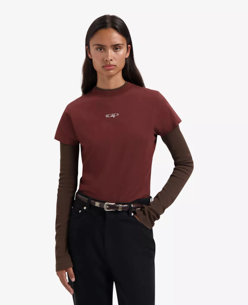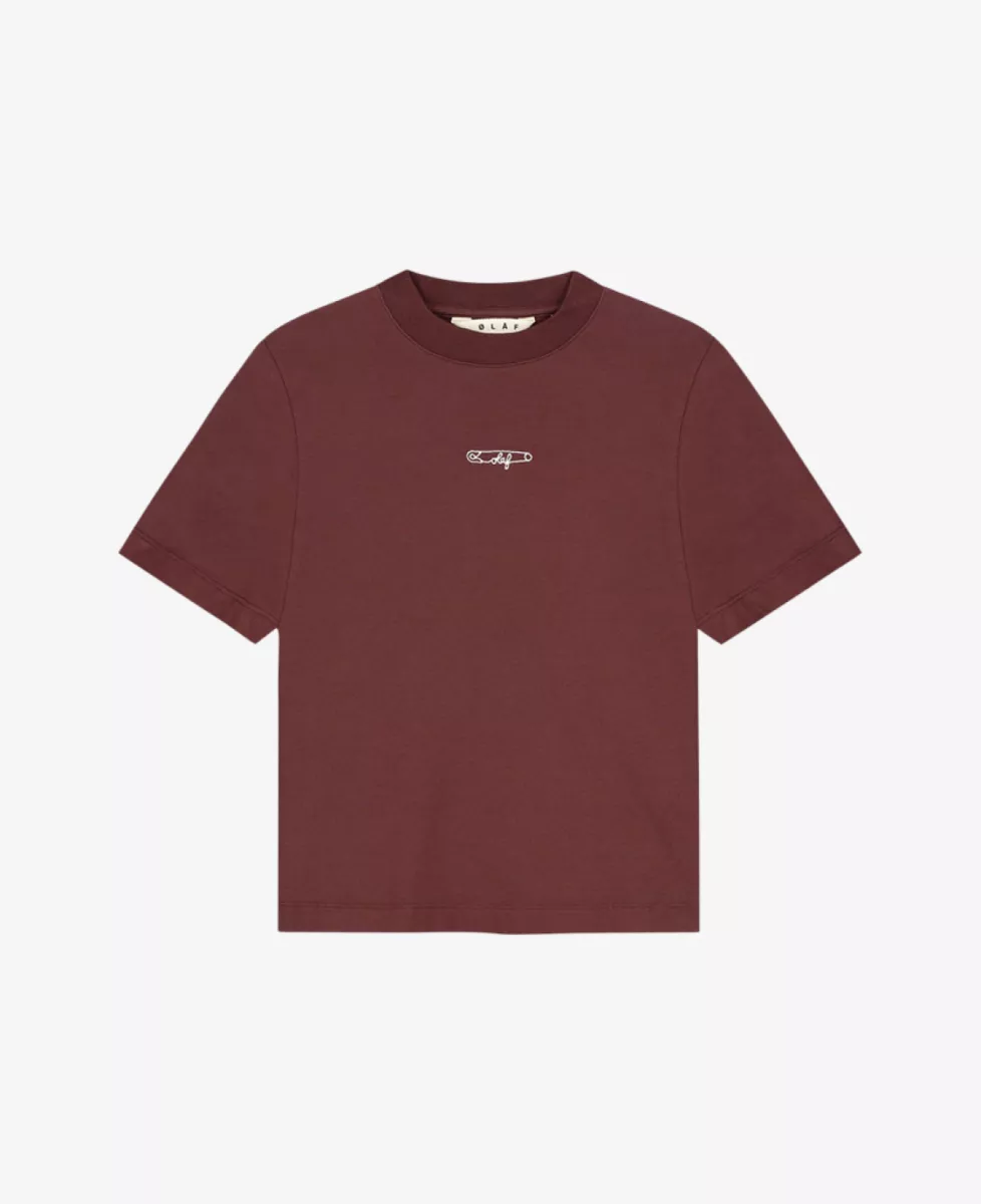 Een tijdloze basic met een eigentijdse twist. Het Pin Baby Tee in Rum Raisin combineert een klassieke pasvorm met moderne details zoals het subtiele ØLÅF-speldborduursel op de borst. Gemaakt van stretch biologisch katoen, sluit het shirt mooi aan en biedt het comfort voor dagelijks gebruik. Perfect om te combineren met zowel casual als meer uitgesproken looks.