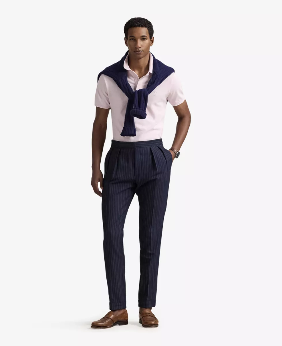 Ralph Lauren polo Deze Ralph Lauren polo heeft een knoopsluiting, een klassieke kraag met krijtstreep aan de onderkant en aan het einde van de mouwen, wat zorgt voor een subtiele maar verfijnde uitstraling. De polo heeft korte mouwen en het iconische Ralph Lauren logo is subtiel geplaatst links boven. Een perfecte mix van stijl en luxe voor een casual look.. Materiaal: 96% katoen, 4% elastaan. Lengte: rugpand: 71cm.