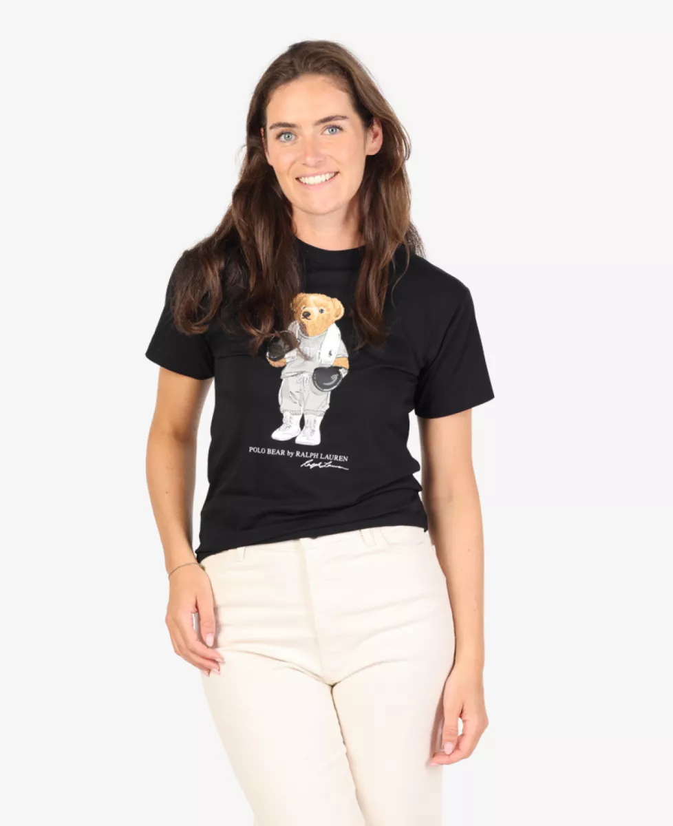 Het Ralph Lauren Polo Bear T-shirt vangt de iconische stijl van het merk in een speelse, maar verfijnde uitvoering. De charmante en gedetailleerde print van de geliefde Polo Bear brengt direct een vleugje persoonlijkheid in je look. Gemaakt van zacht, ademend katoen en uitgevoerd in stijlvol zwart, biedt dit T-shirt de perfecte balans tussen comfort, kwaliteit en luxe uitstraling.