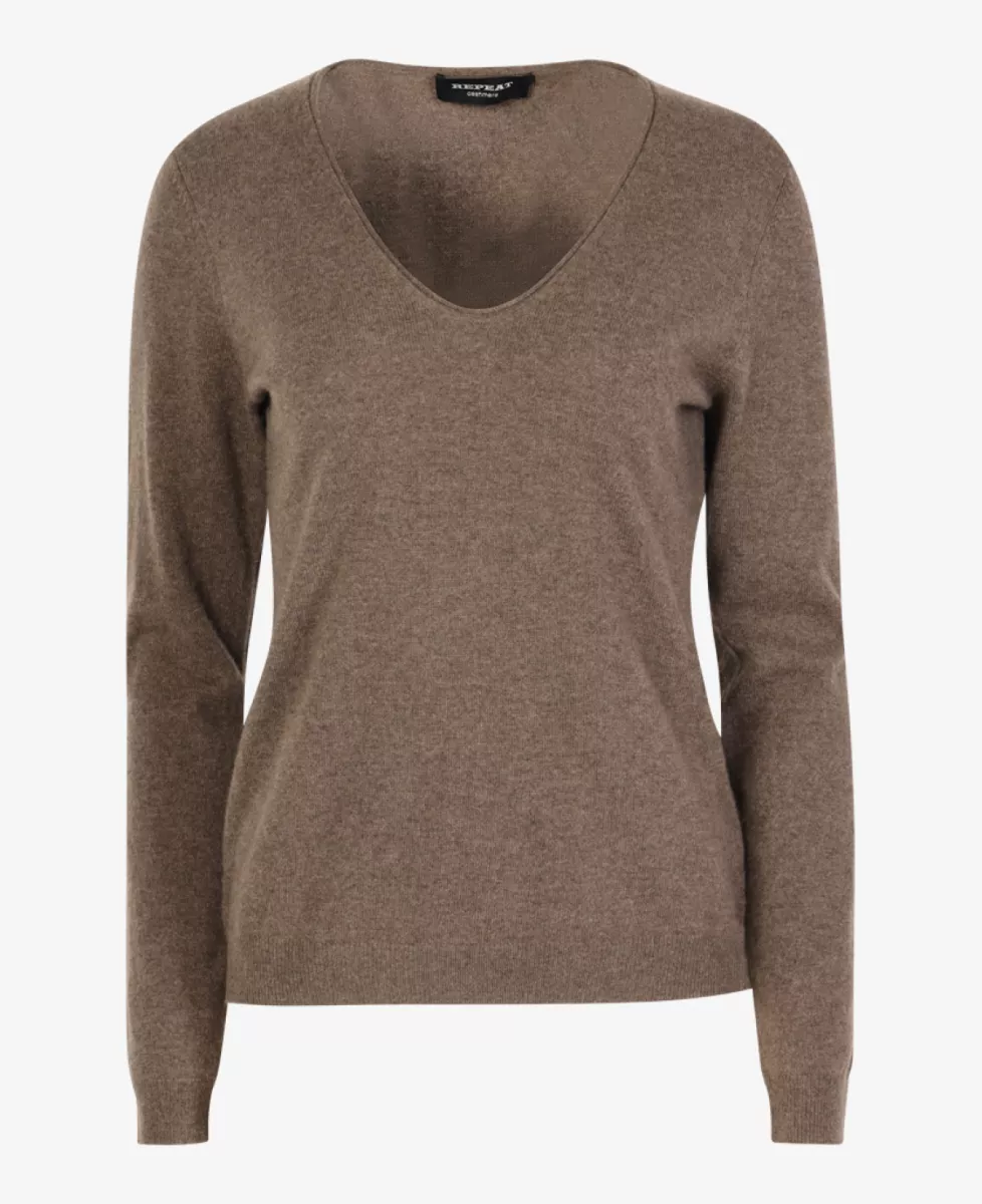 Deze mooie trui van Repeat is gemaakt van 100% cashmere en voelt heerlijk zacht aan. Met een tijdloze V-hals is het een luxe en comfortabele toevoeging aan je garderobe, perfect voor zowel casual als verfijnde looks.
