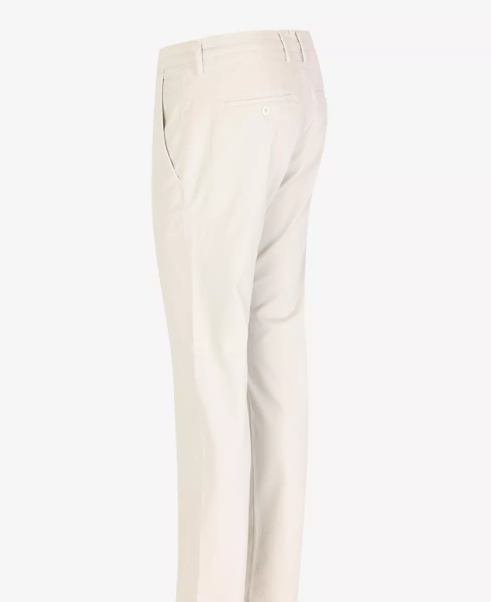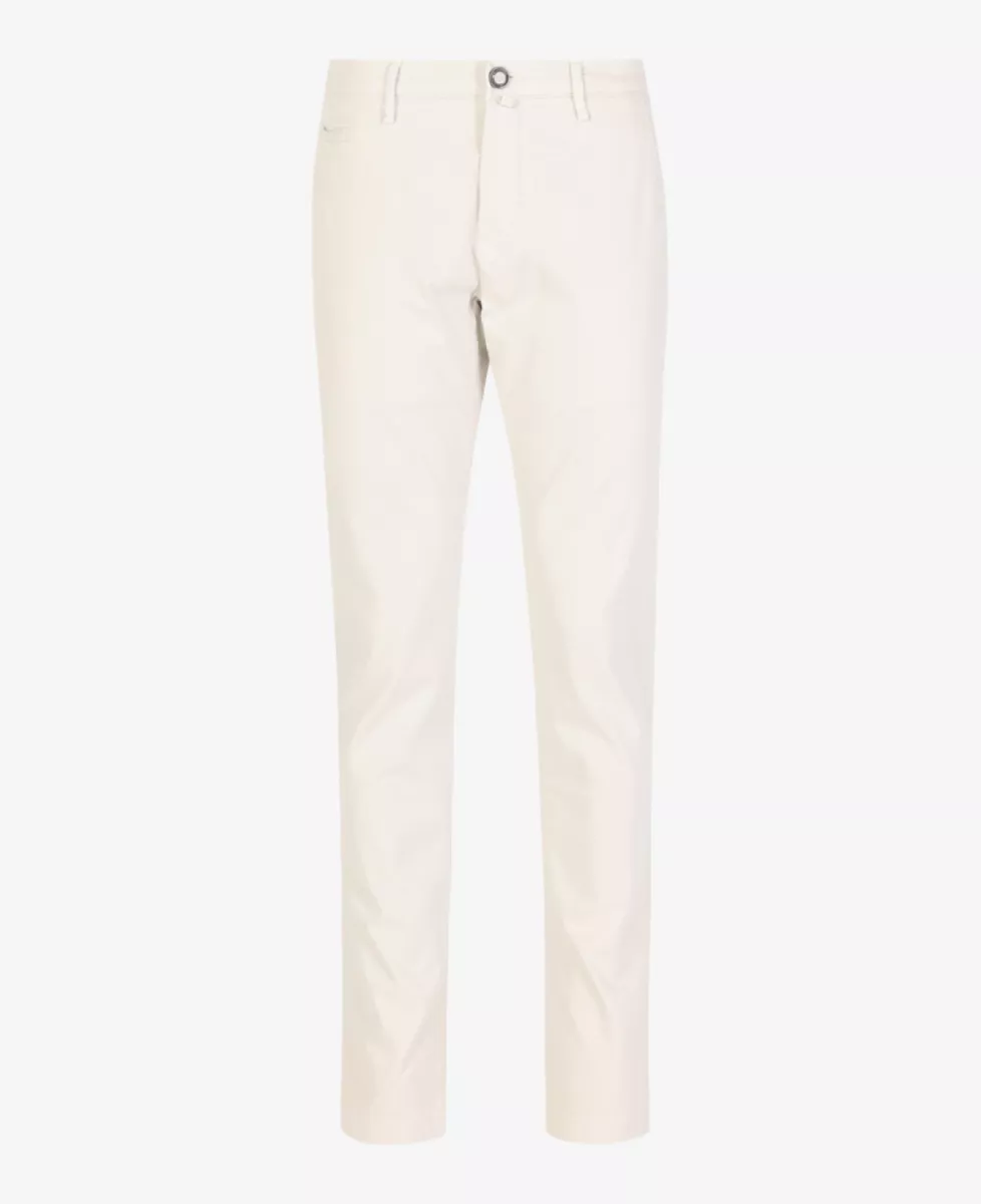 Deze chino van Jacob Cohën is ecru gekleurd en heeft een slim fit, aangesloten vanaf de bovenbenen en loopt recht naar beneden tot de zoom. De broek is gemaakt van katoen en bevat een lichte stretch voor een comfortabele pasvorm.