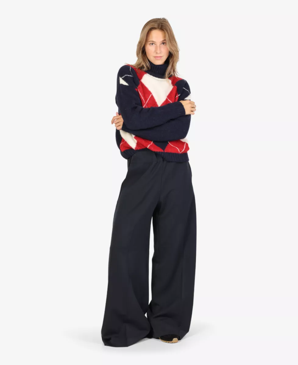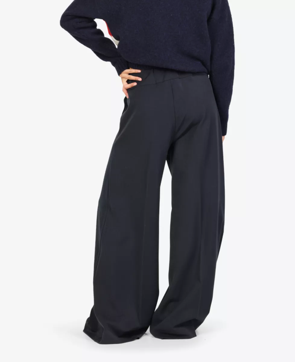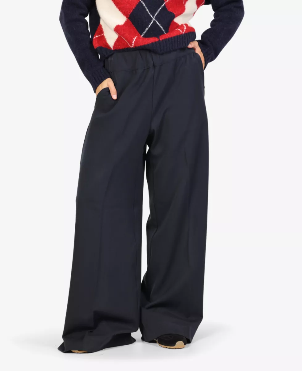 Deze broek heeft een elegante en ontspannen uitstraling. Het model is wijd uitlopend, met een hoge tailleband die zorgt voor een flatterende pasvorm. De stof valt soepel en recht naar beneden, wat zorgt voor een verfijnde silhouet en veel draagcomfort. Perfect te combineren met zowel een blouse als een gebreide trui voor een stijlvolle, dagelijkse look.