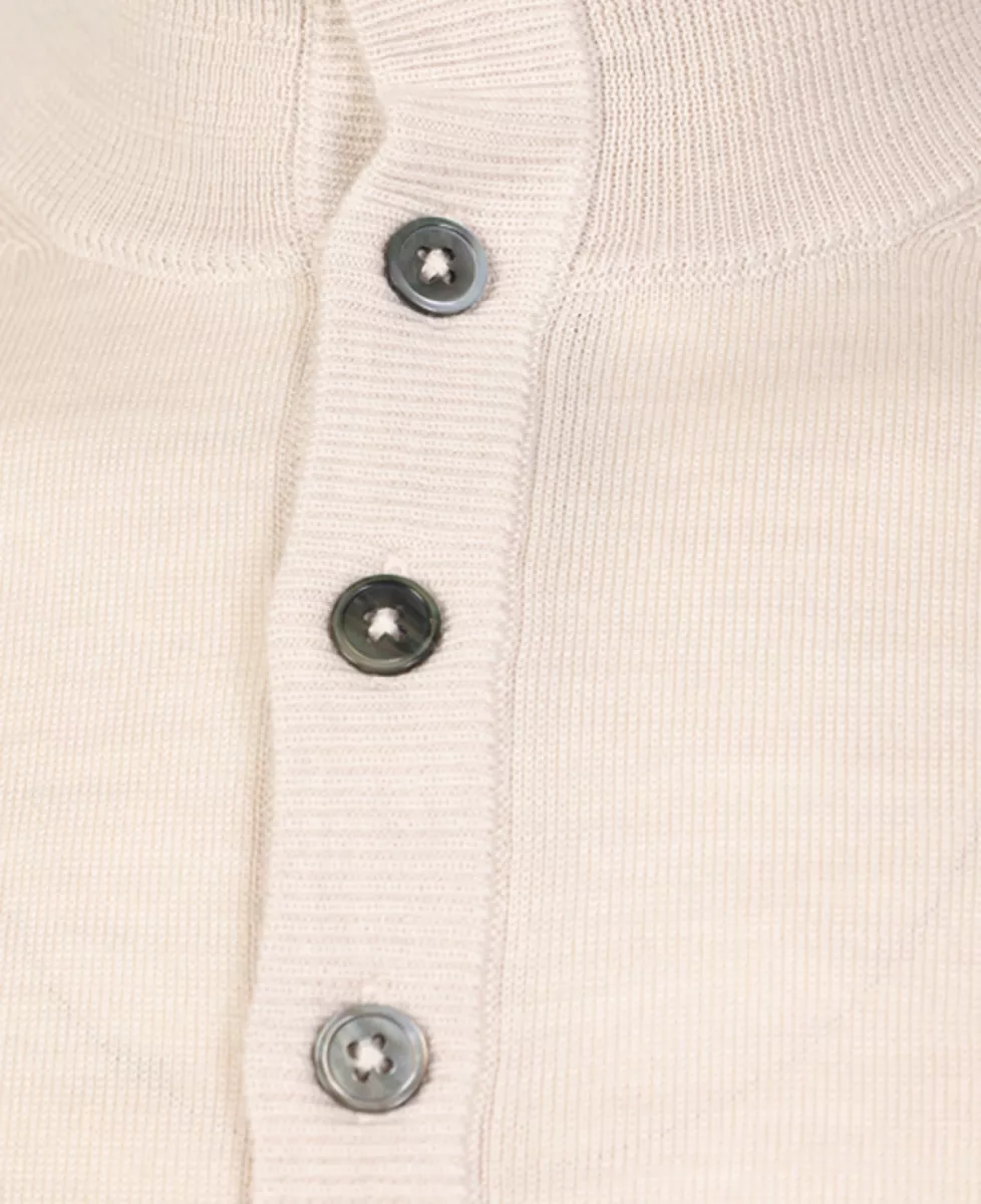 Pullover van Seven Dials met een cleane look en subtiele details. De opstaande kraag met knoopsluiting geeft ‘m een verfijnde uitstraling, terwijl de zachte merinowol zorgt voor comfort en stijl. Een fijne basic met karakter.