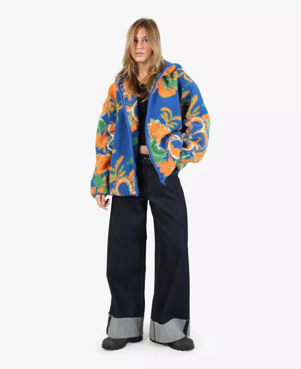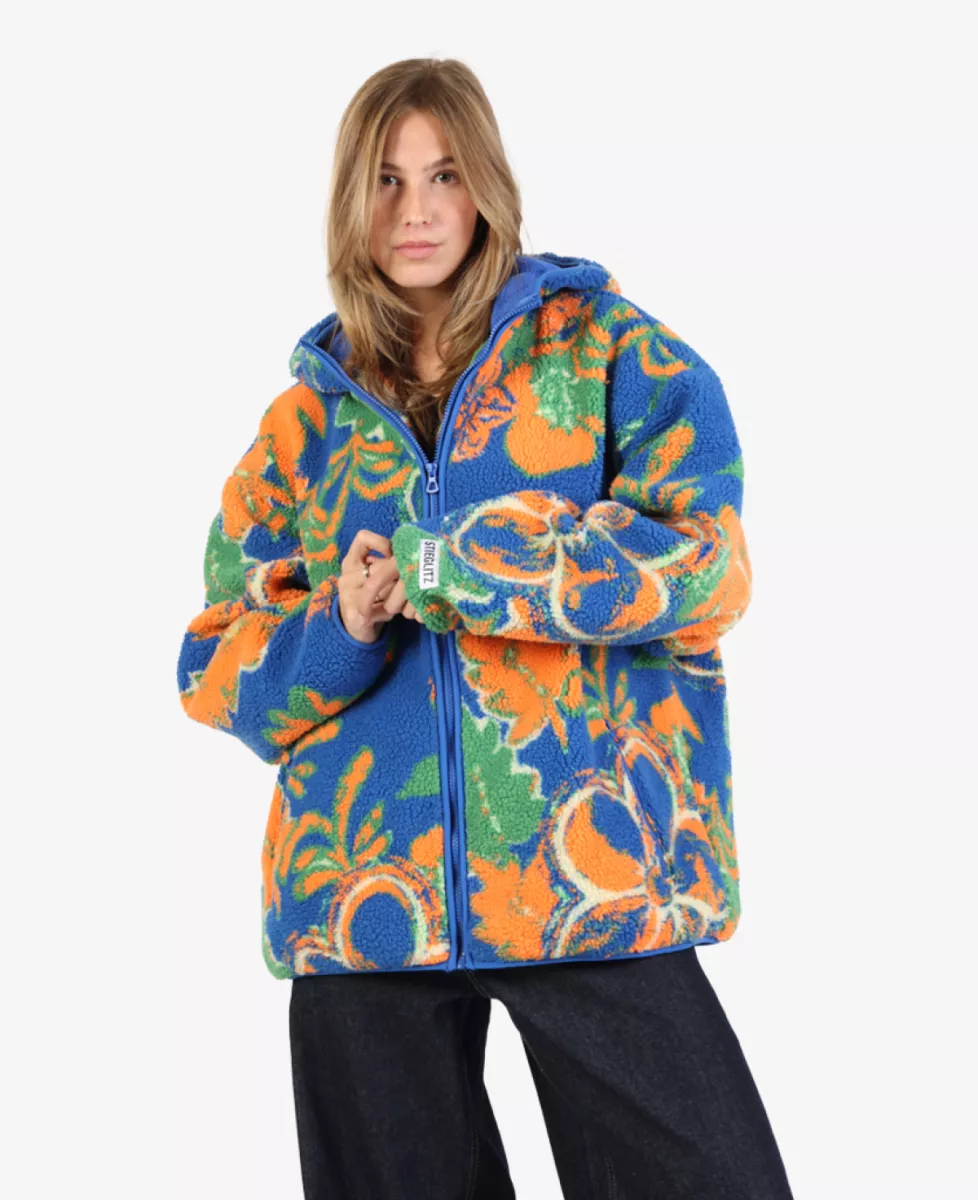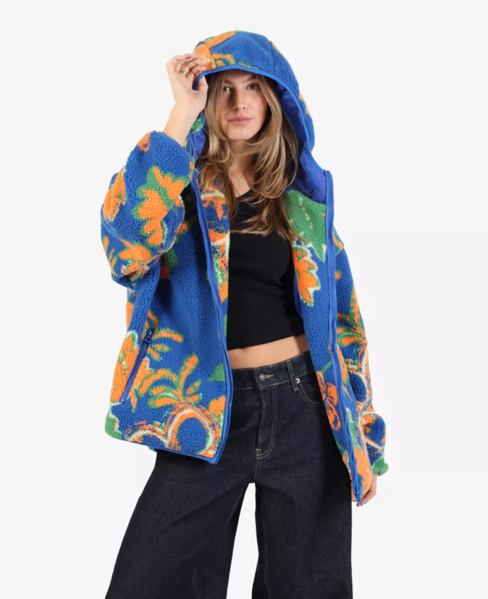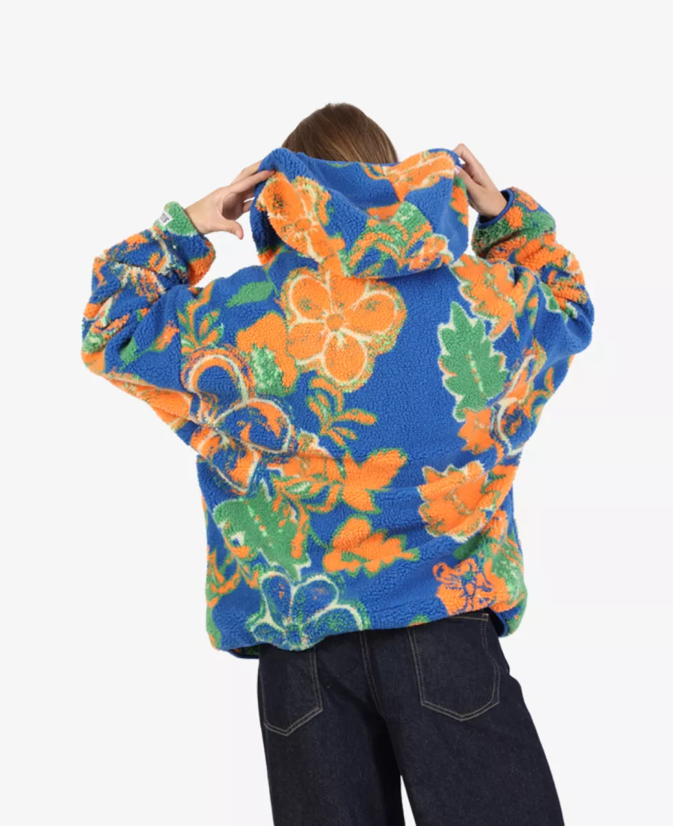 Deze gebloemde fleece van STIEGLITZ is een echte eyecatcher. Ontworpen in Amsterdam en uitgevoerd in een oversized fit, zit hij heerlijk comfortabel. Dankzij de capuchon en unieke print per stuk is elke jas een bijzonder item in je garderobe.