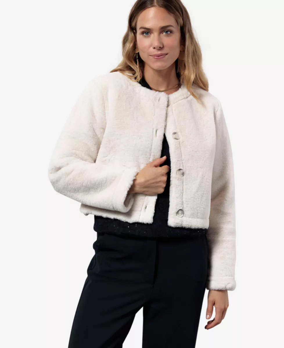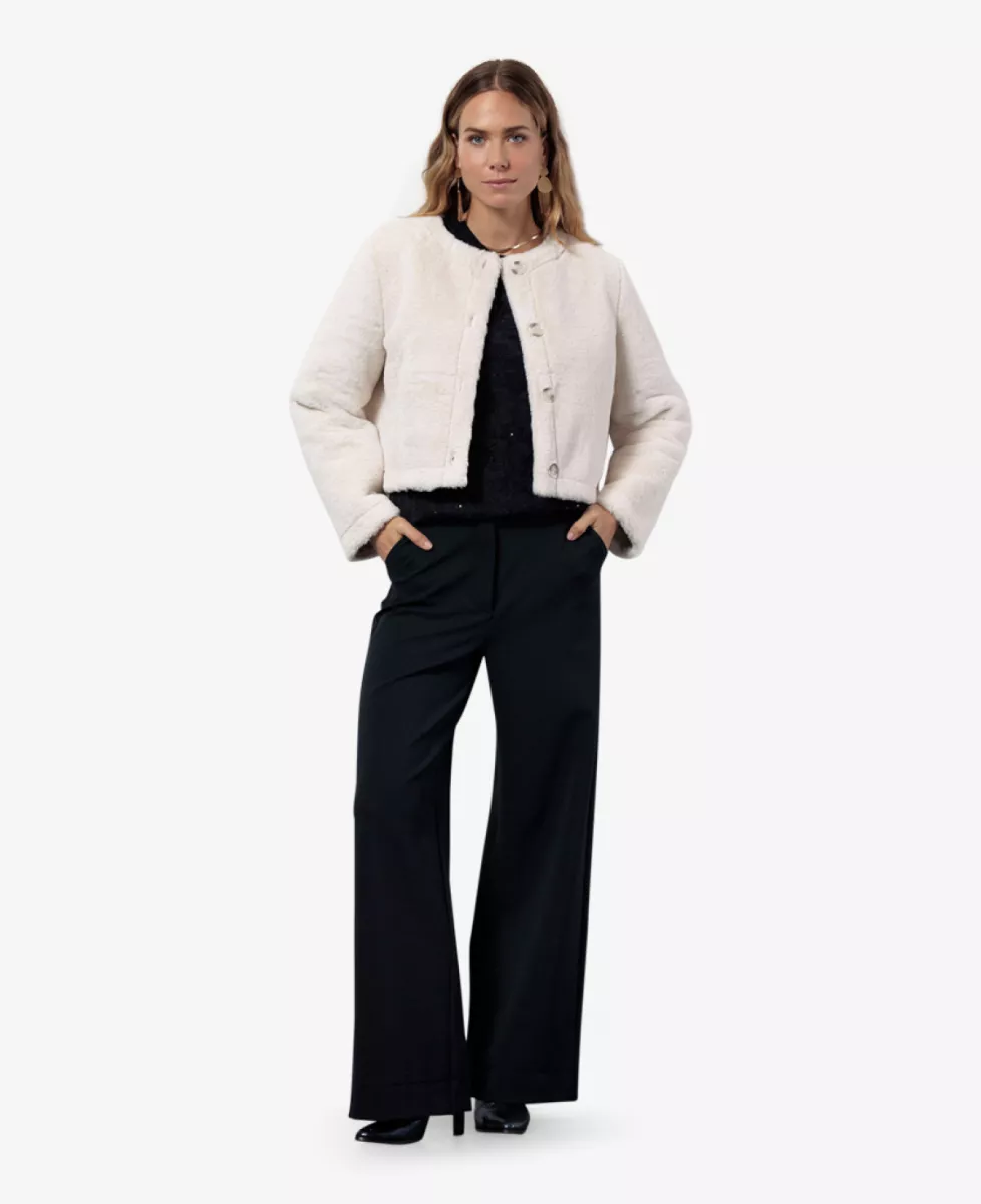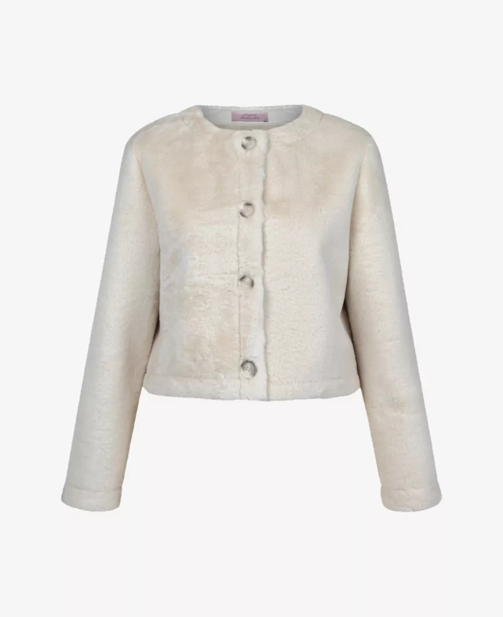 De Blaze furry jacket van Studio Anneloes is een kort jasje met een boxy fit en zachte uitstraling. Het ontwerp heeft een ronde hals, flame buttons en is uitgevoerd in een knuffelzachte furry kwaliteit die comfortabel aanvoelt. Een veelzijdig item dat ideaal is voor laagjes en cosy chique combinaties.