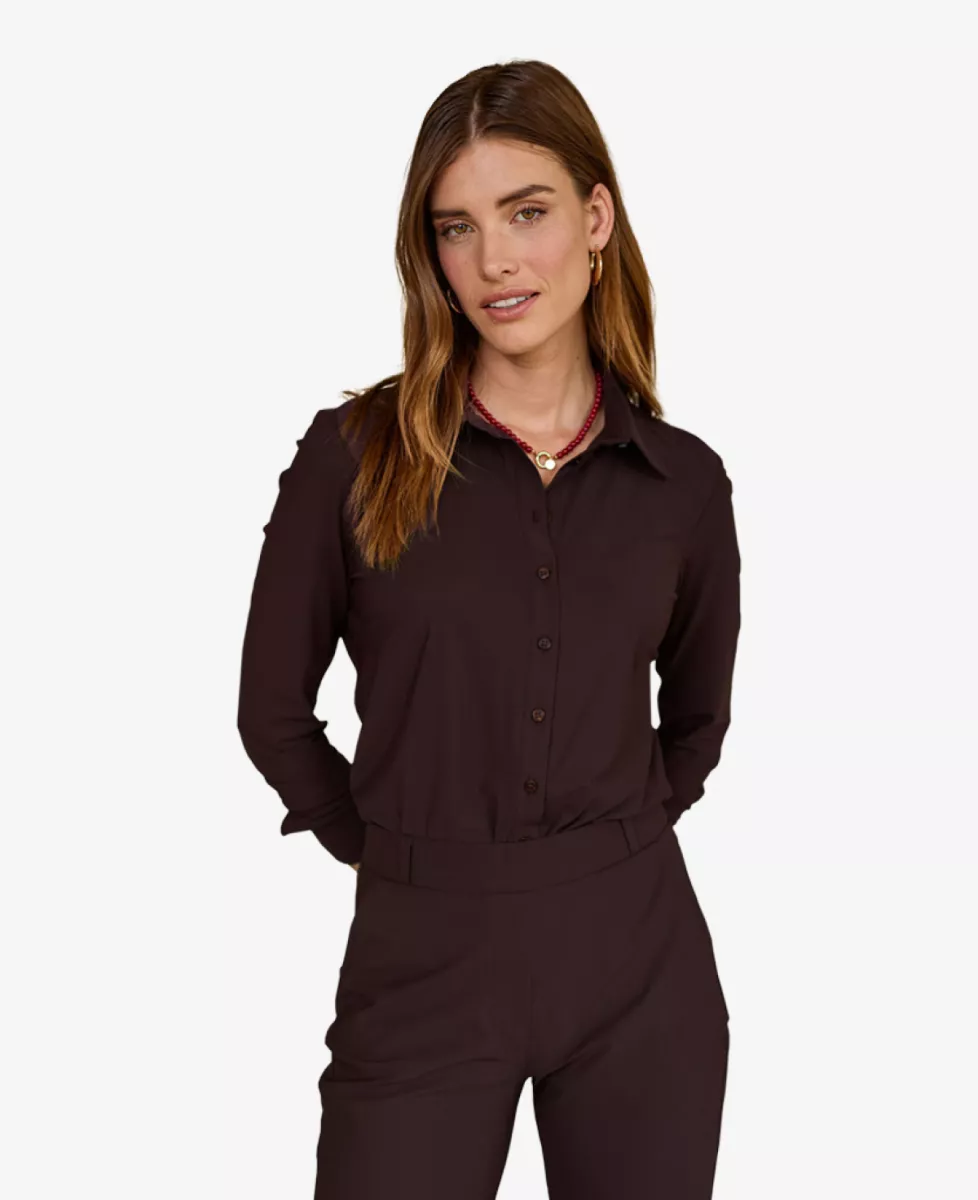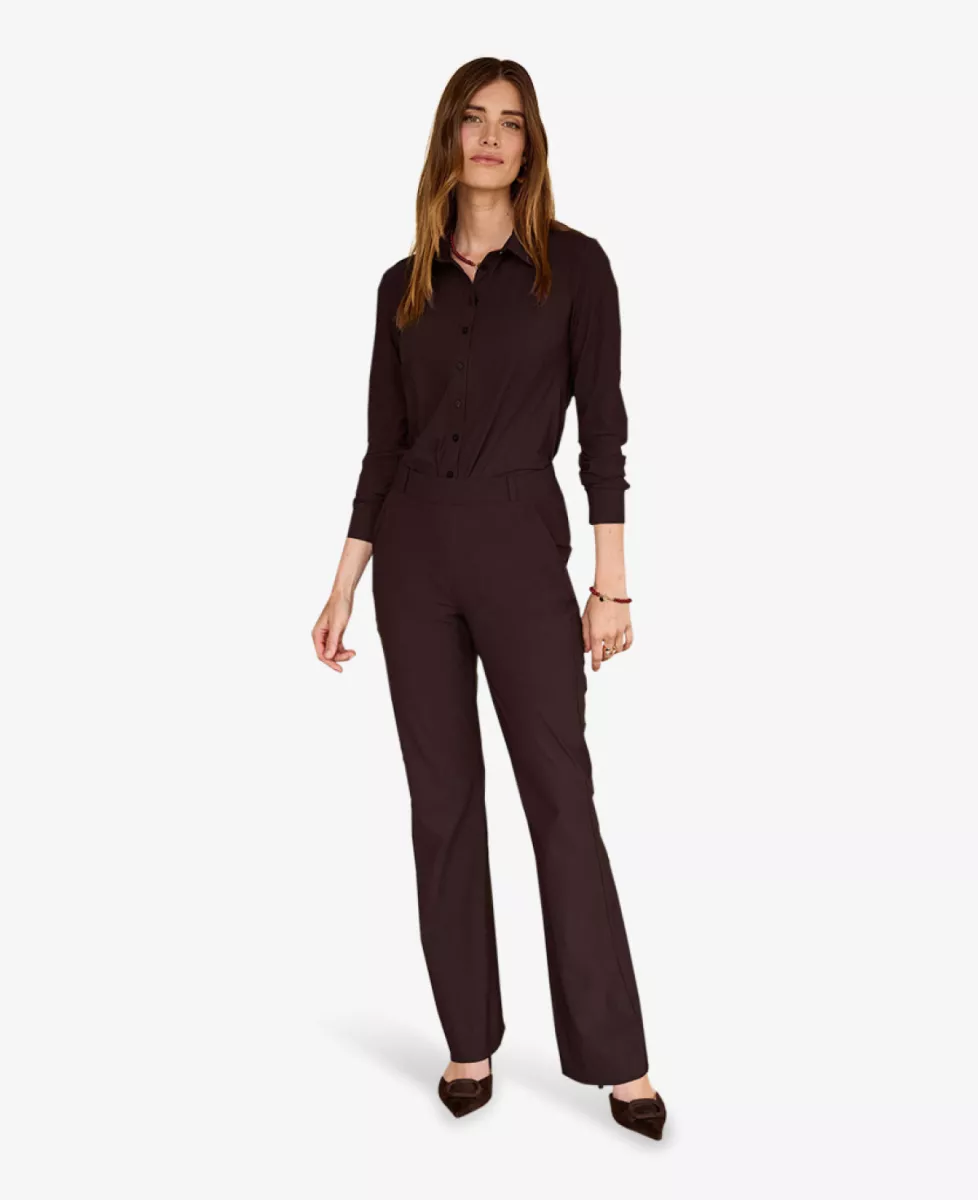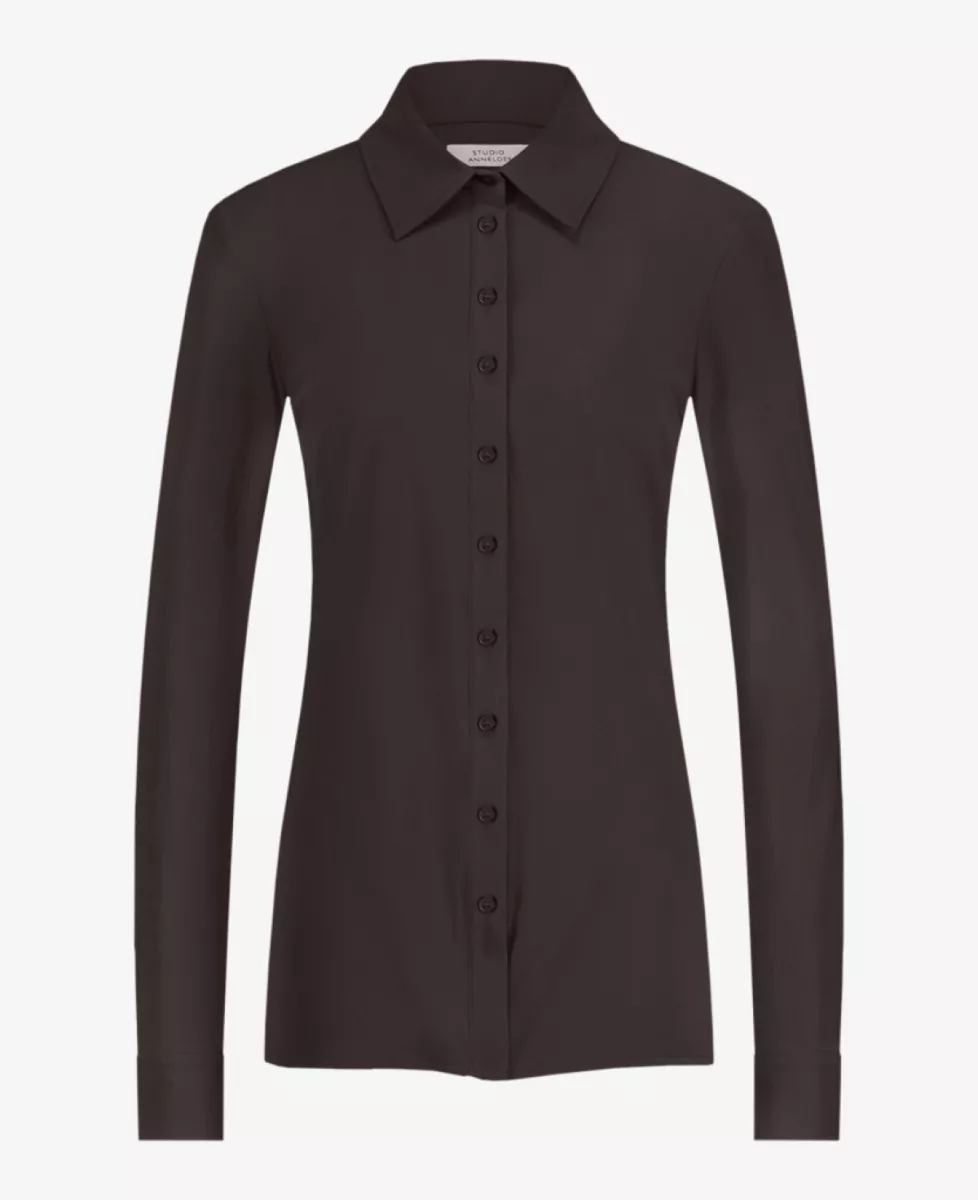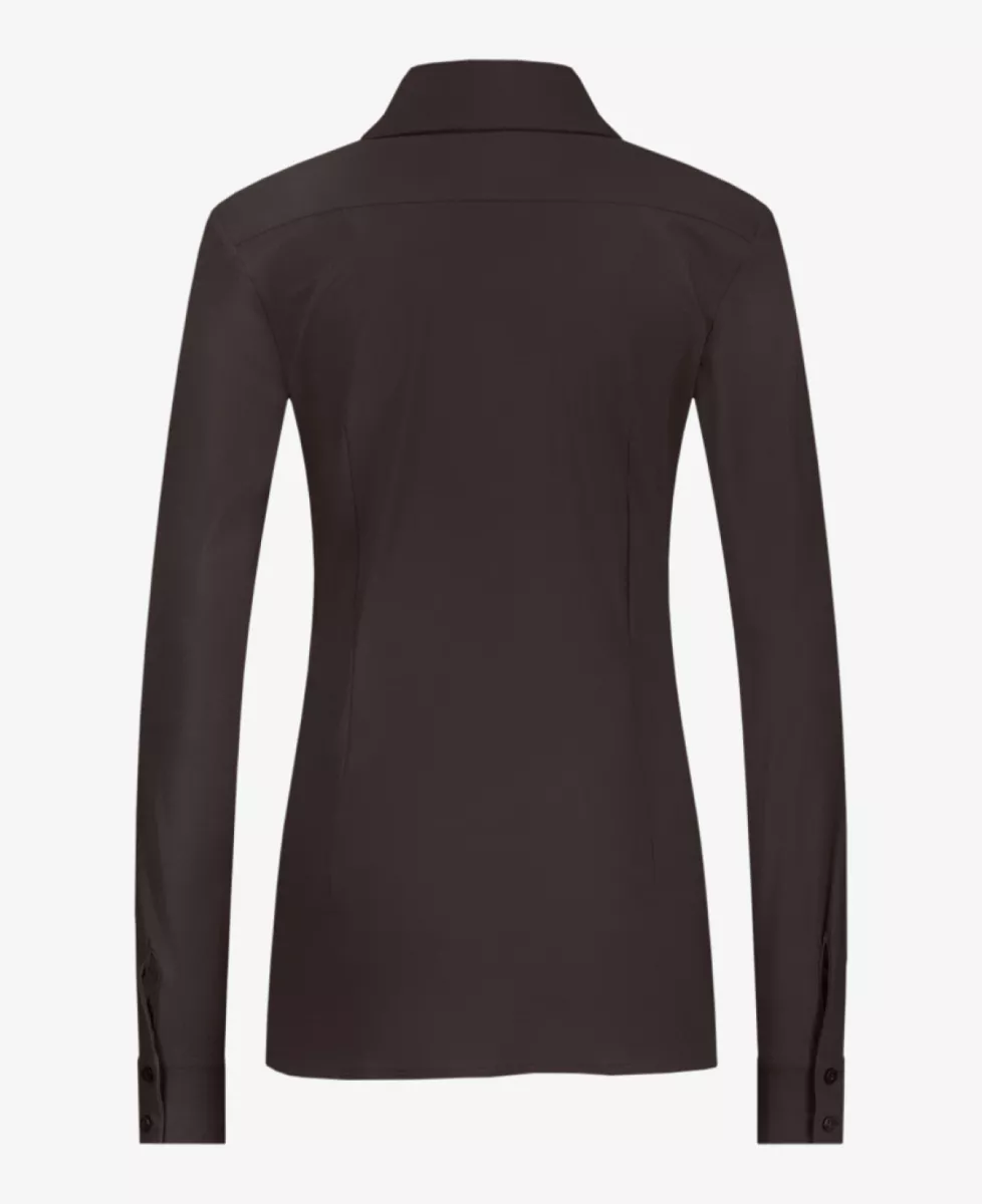 De Studio Anneloes Poppy Blouse in de kleur Espresso is een tijdloze klassieker die stijl en comfort combineert. Uitgevoerd in een diepe, warme bruintint, biedt deze blouse veelzijdige stylingmogelijkheden voor zowel zakelijke als casual gelegenheden. De blouse heeft een regular fit, is licht getailleerd en heeft lange mouwen met klassieke manchetten. De blouse draagt zeer comfortabel vanwege de Light Travelstof.