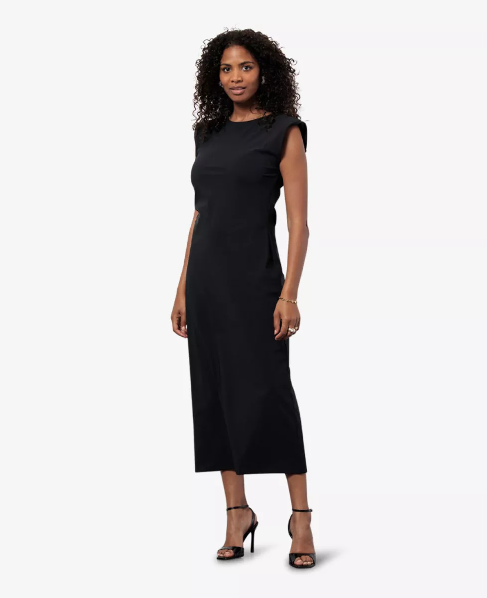 De Jewel dress van Studio Anneloes is een elegante must-have met een sterke, stijlvolle uitstraling. Het tijdloze zwart vormt de perfecte basis, terwijl subtiele details zoals de schoudervullingen en het plooiaccent bij de taille het silhouet prachtig benadrukken. De split aan de achterkant geeft het ontwerp bovendien een speelse en verfijnde touch.