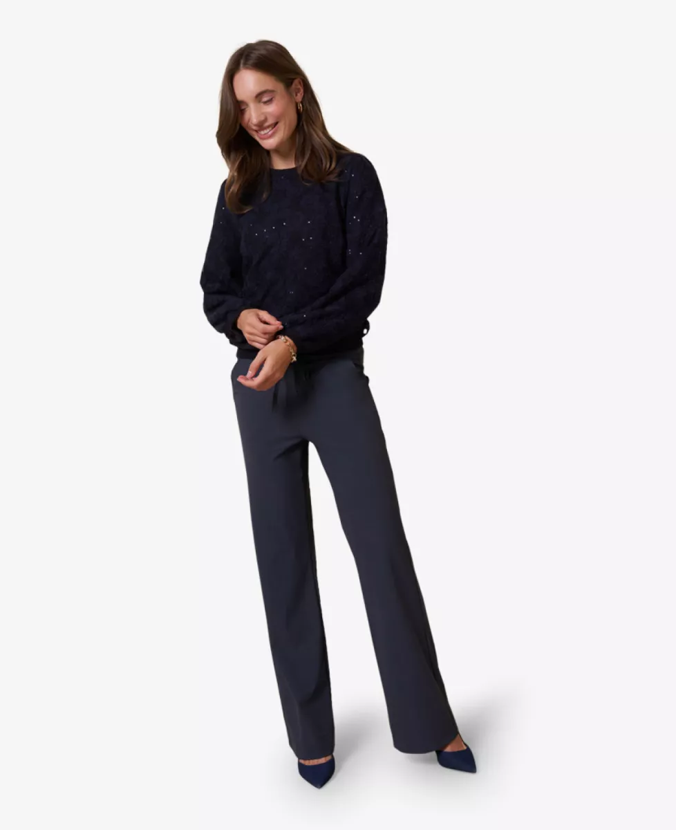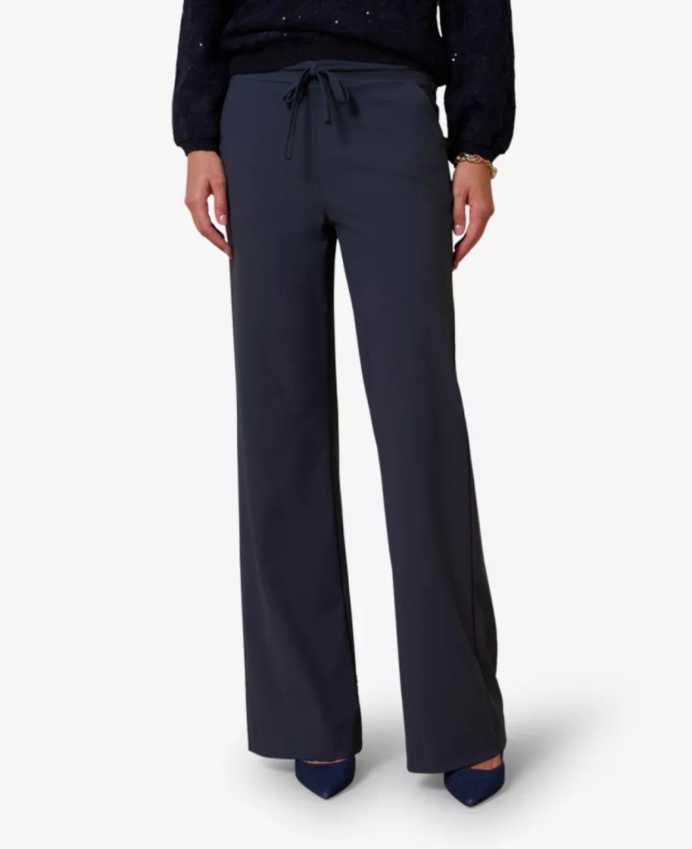 Deze broek van Studio Anneloes heeft een relaxte fit en vrouwelijke flair. Het ontwerp heeft wide leg pijpen, een trekkoord in de taille en steekzakken, wat zorgt voor een nonchalante maar stijlvolle uitstraling. De stevige Heavy Travelstof biedt comfort, rek en behoudt mooi de vorm.
