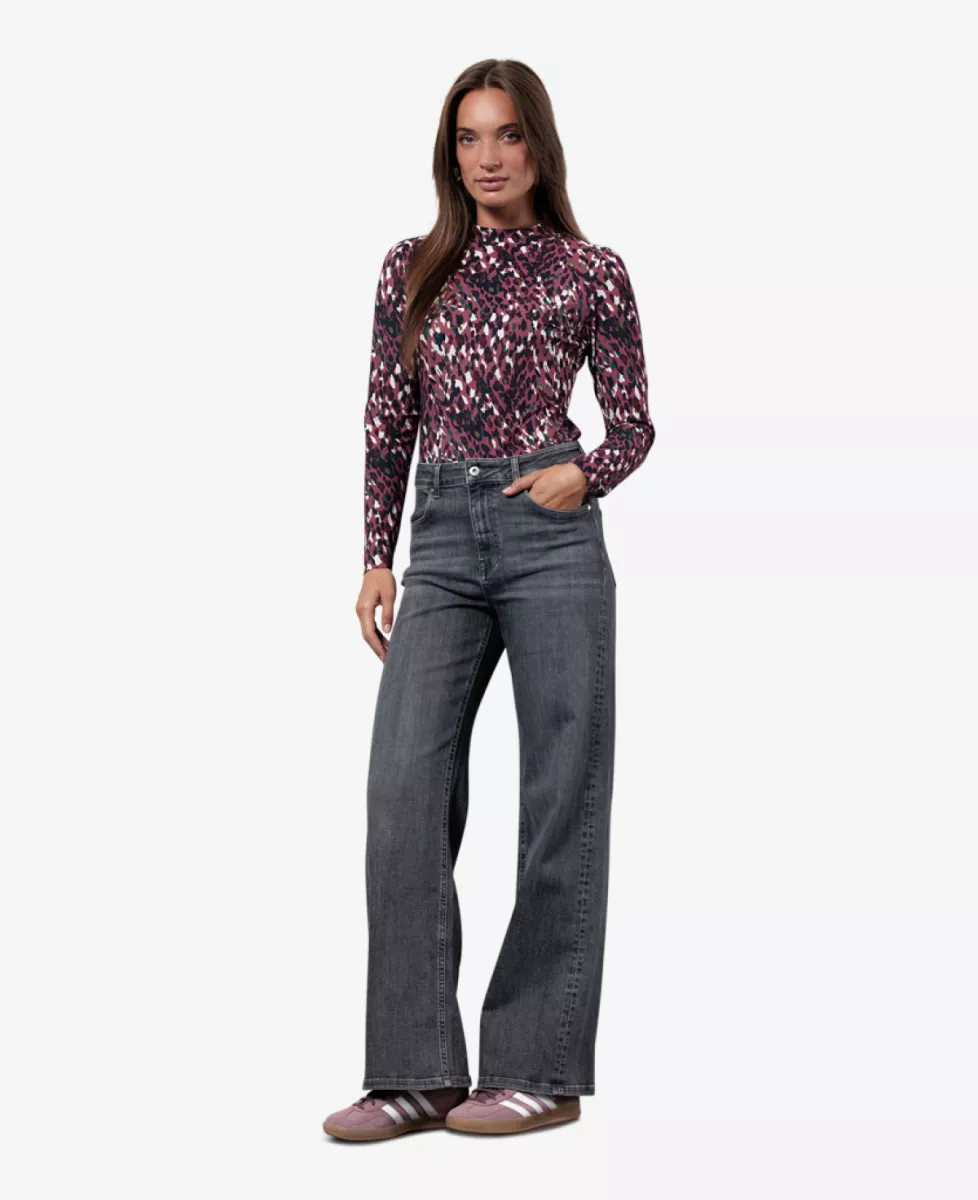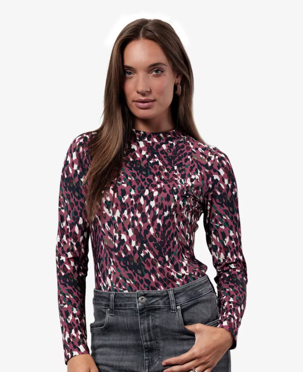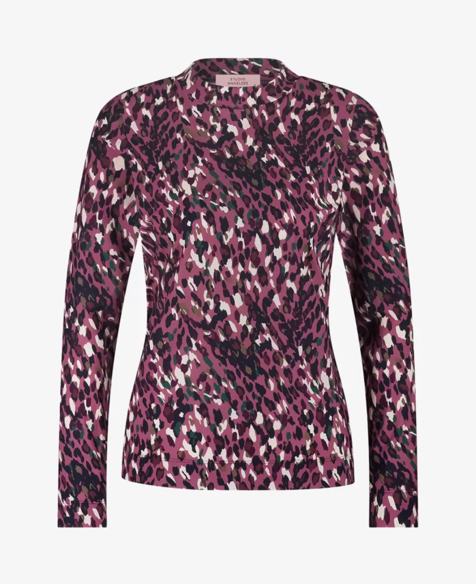 Top van Studio Anneloes met luipaardprint en opstaand kraag.