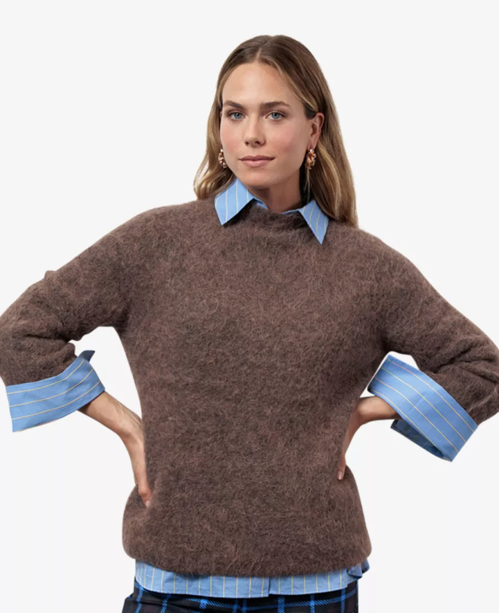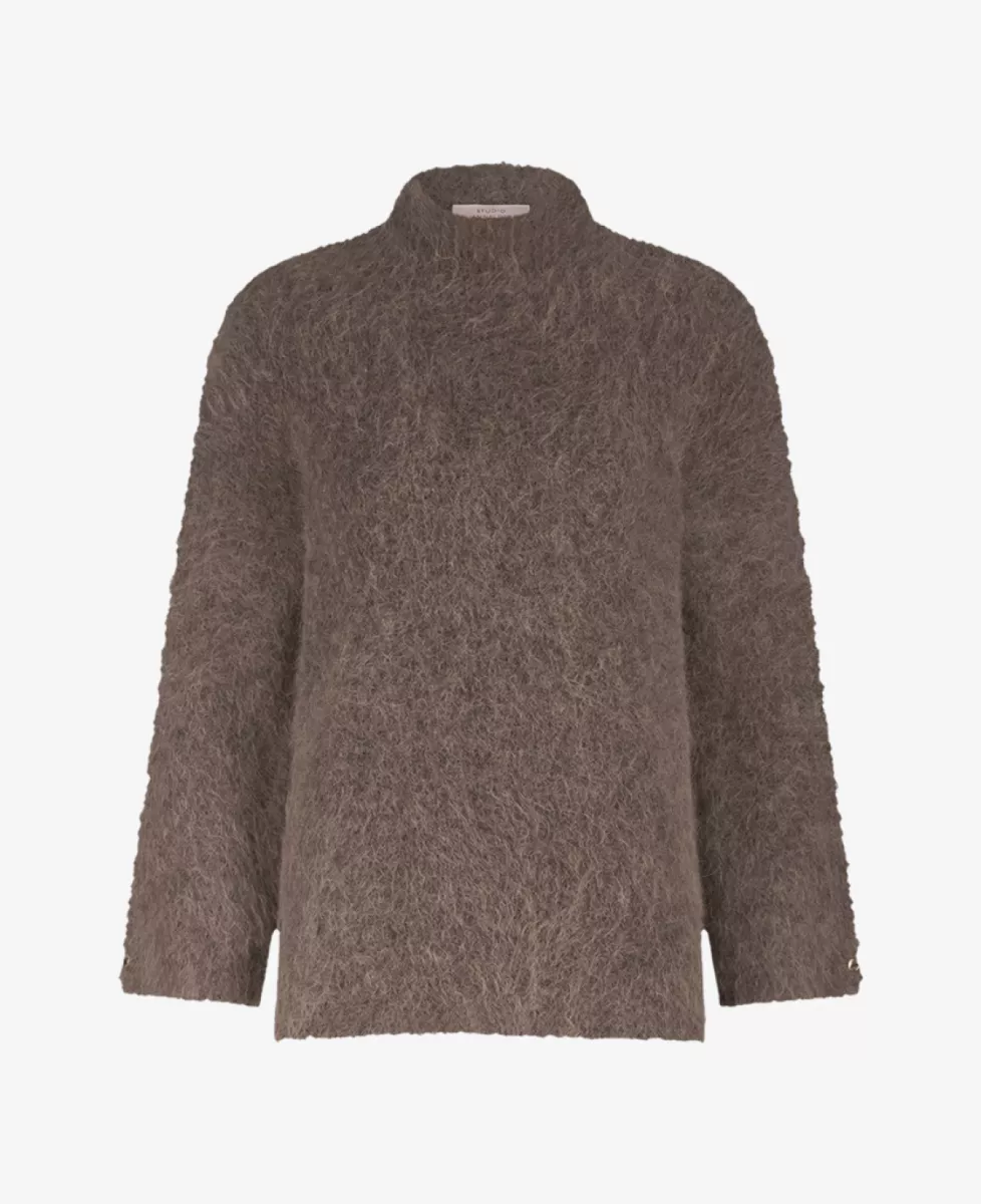 De Marelle pullover van Studio Anneloes is een zachte, warme knit met een moderne uitstraling. De harige textuur, vrouwelijke pasvorm en elegante opstaande kraag maken dit item tot een stijlvolle essential voor het najaar.