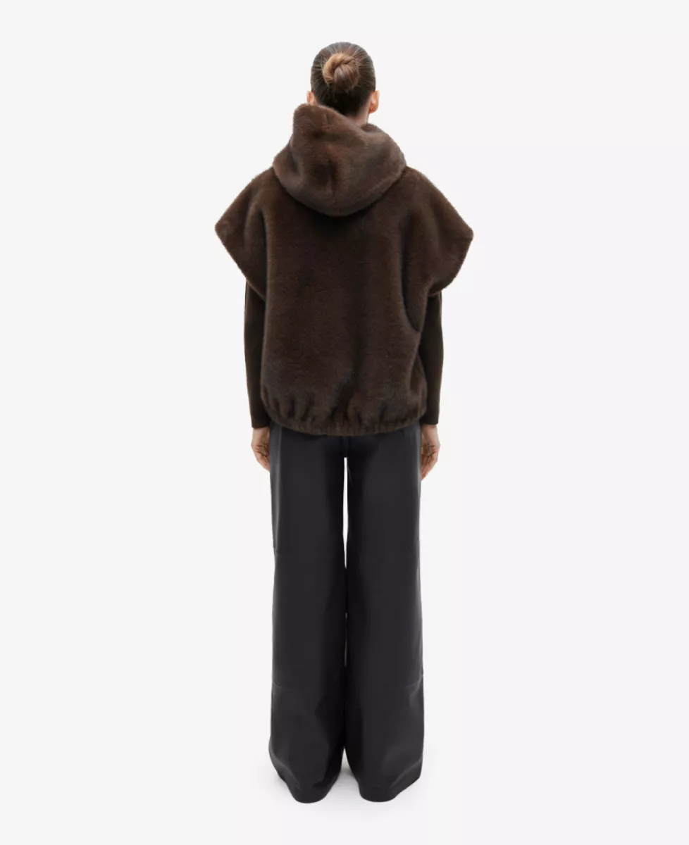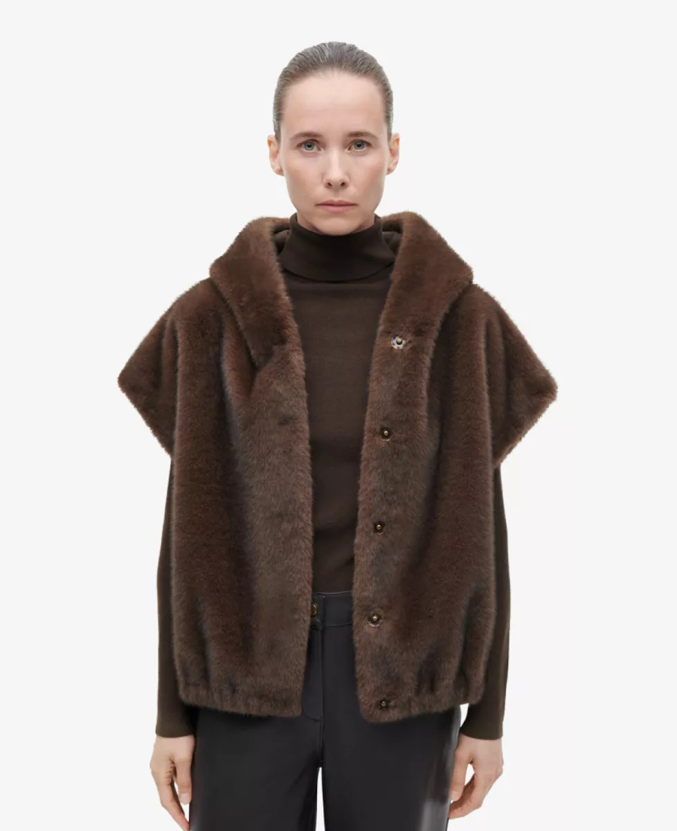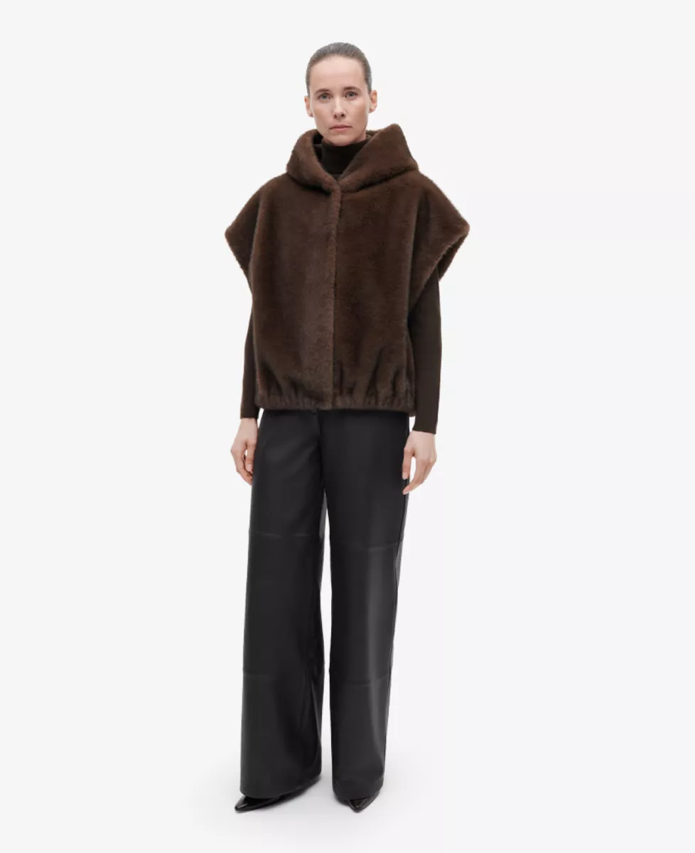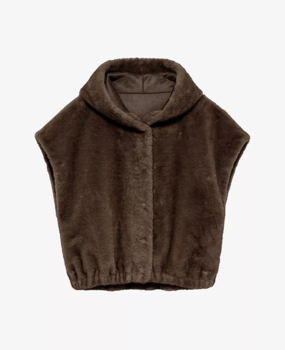 Deze mouwloze bodywarmer is uitgevoerd in een zachte, pluche stof die uitnodigt tot dragen op koudere dagen. Het korte en losse model heeft een elastische zoom voor een subtiele vorm en extra comfort. De opstaande kraag zorgt voor extra warmte rond de nek en geeft het geheel een cozy uitstraling. Ideaal als extra laagje over een trui of longsleeve voor een nonchalante, moderne look.