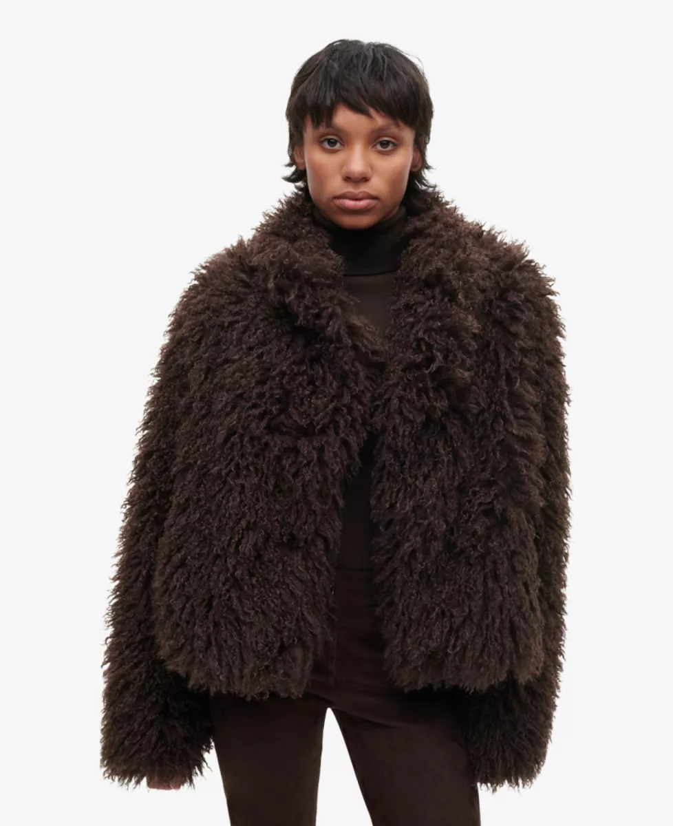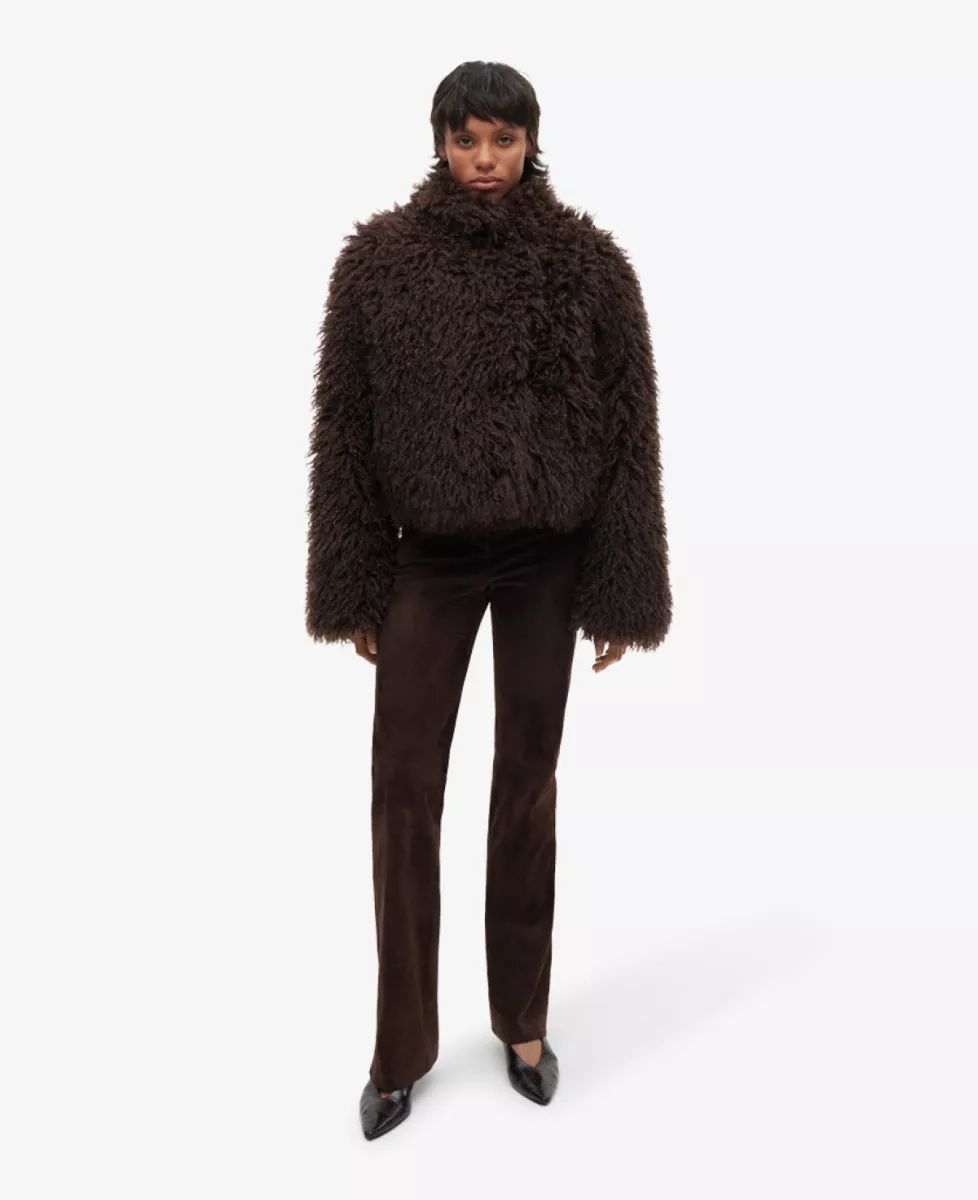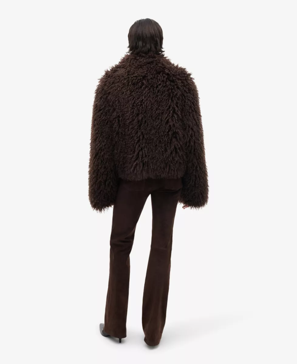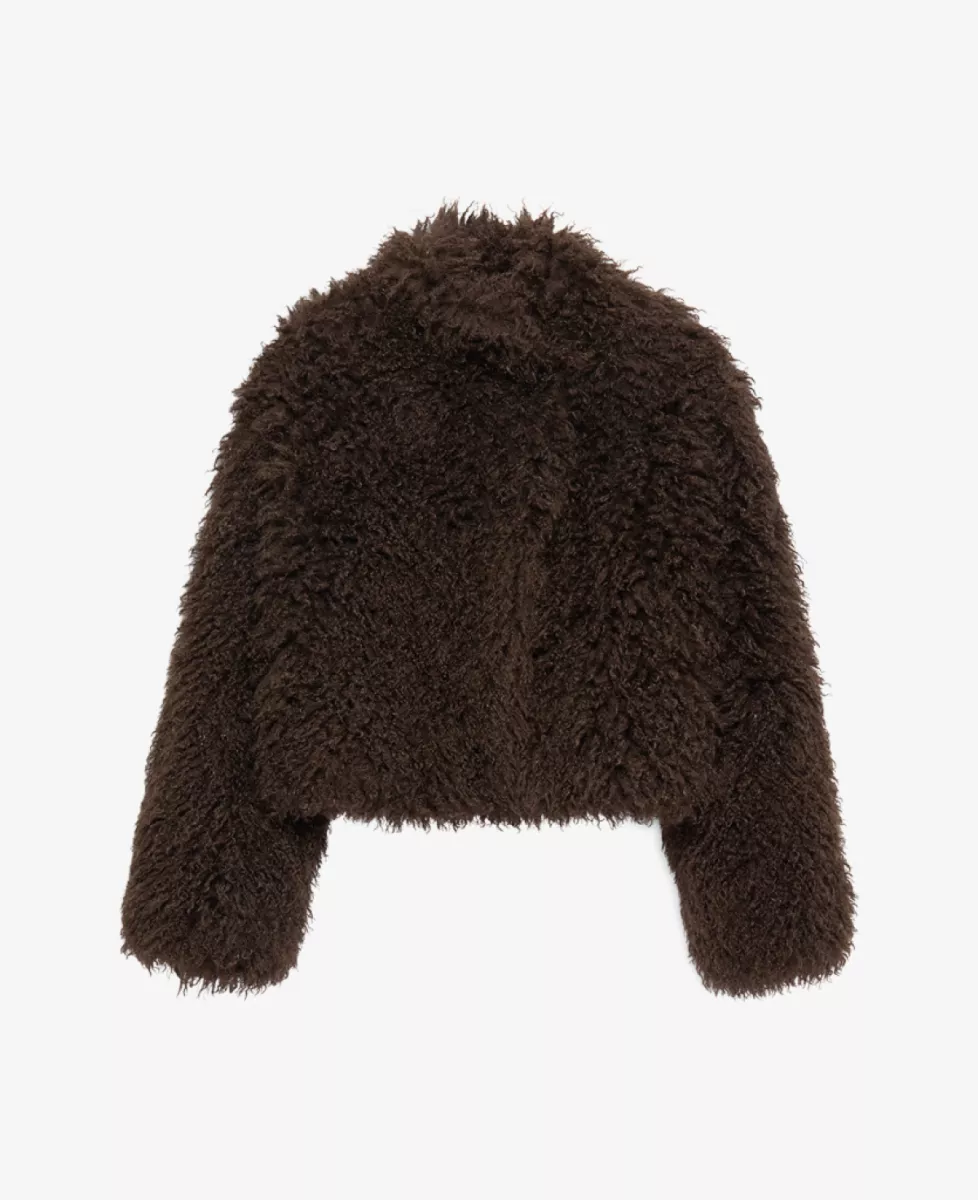 Deze korte jas heeft een losse pasvorm en een ronde kraag. Het dikke, donkergroene teddy materiaal zorgt voor extra warmte en een gezellige uitstraling.