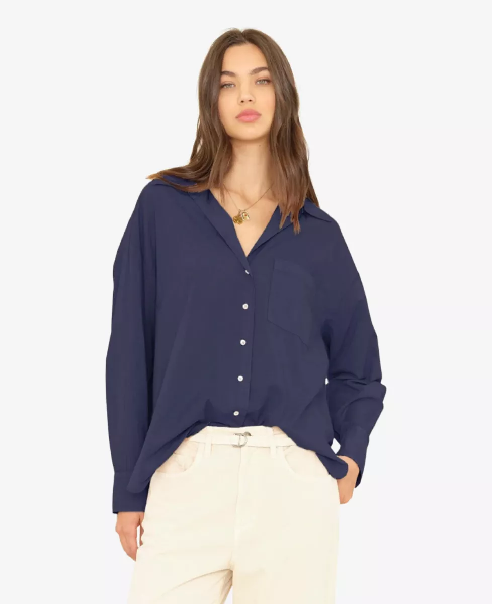 De Xirena blouse is een tijdloze en veelzijdige blouse die moeiteloos stijl en comfort combineert. Het ontwerp heeft een klassieke kraag en een knoopsluiting, terwijl ook de mouwen zijn afgewerkt met knopen voor een verzorgde uitstraling. Op de linkerborst bevindt zich een subtiel borstzakje voor een speels detail. De iets langere achterkant geeft de blouse een moderne touch en maakt hem ideaal om zowel los als ingestopt te dragen.